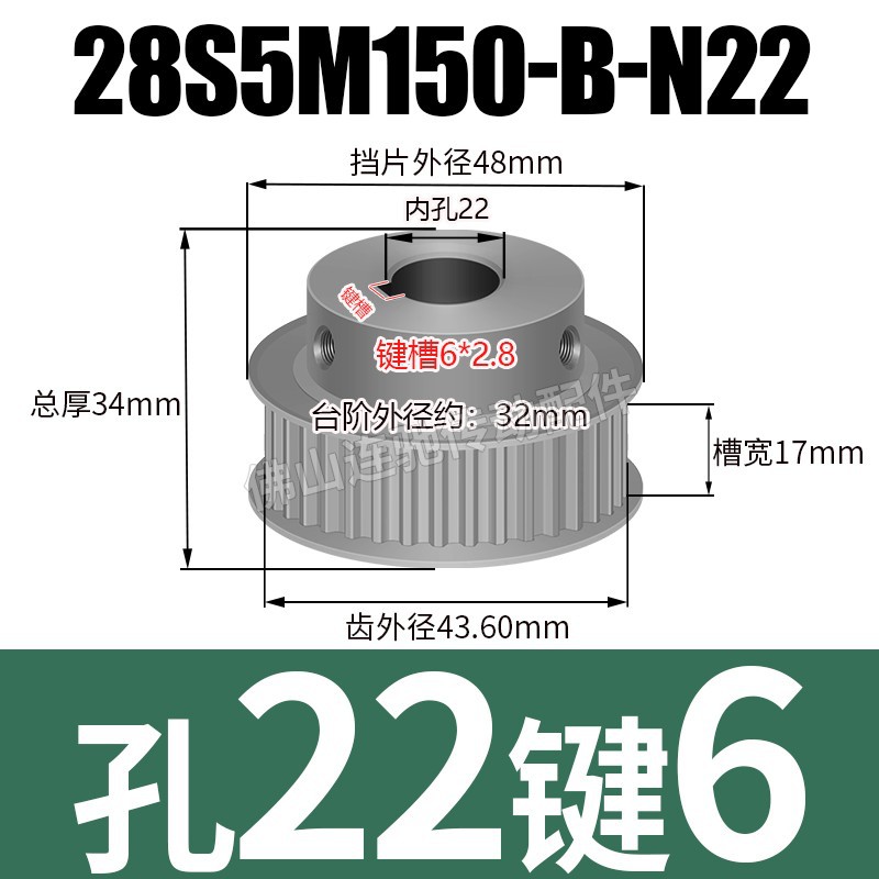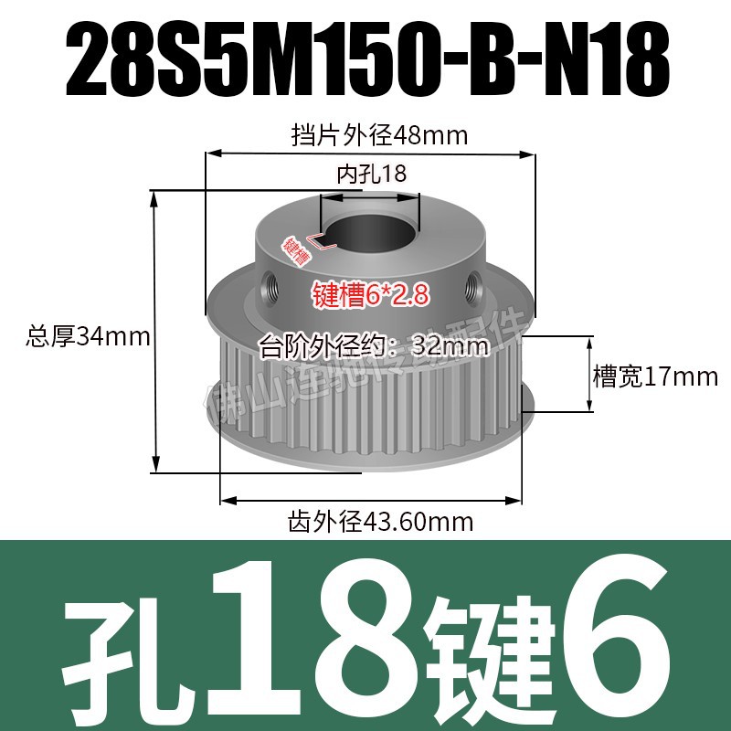 • 28개 치아-S5M-슬롯 폭 17-B-구멍 18 키 6*2.8