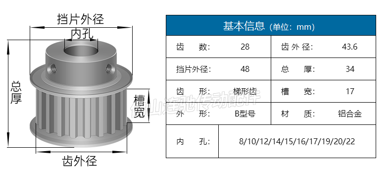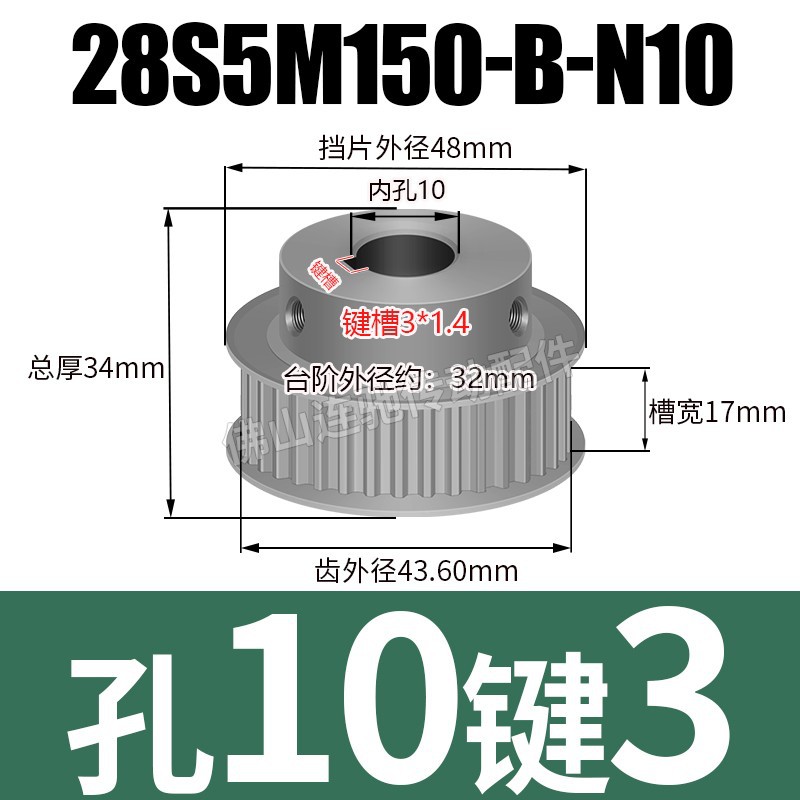 • 28개 치아-S5M-슬롯 폭 17-B-구멍 10 키 3*1.4