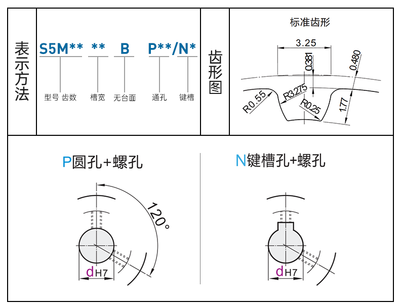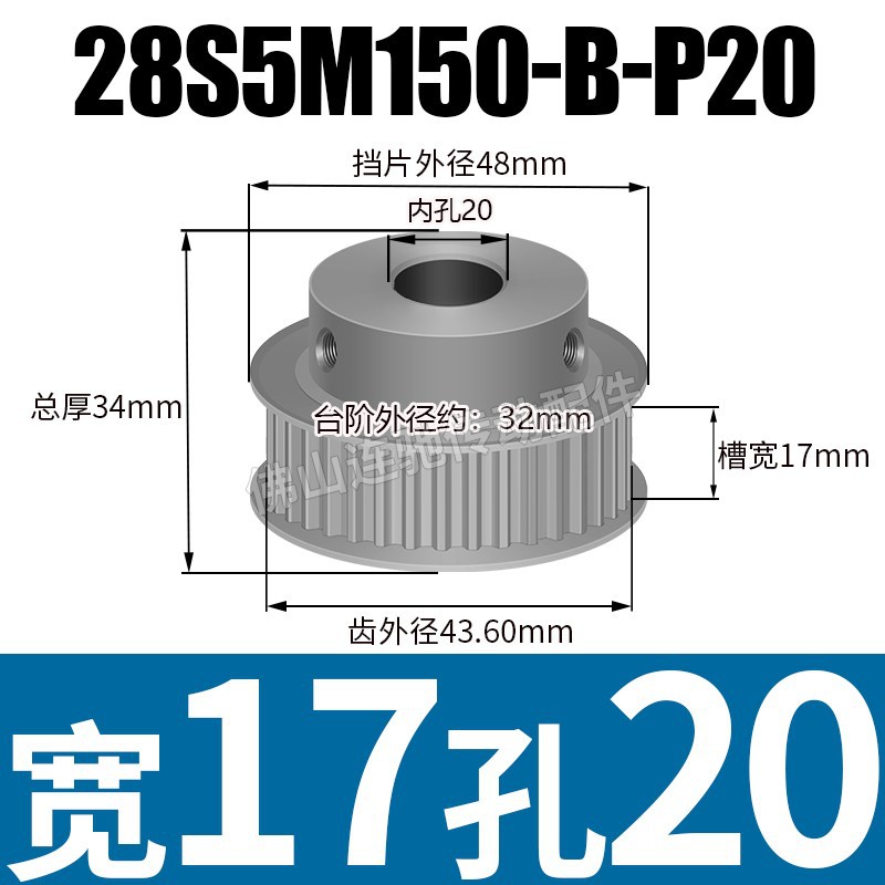 • 28개 치아-S5M-슬롯 폭 17-B-구멍 20
