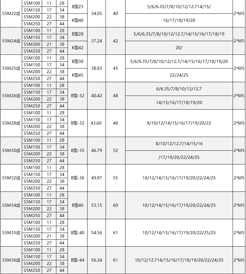 • 28개 치아-S5M-슬롯 폭 17-B-구멍 12개 키 5*2.3