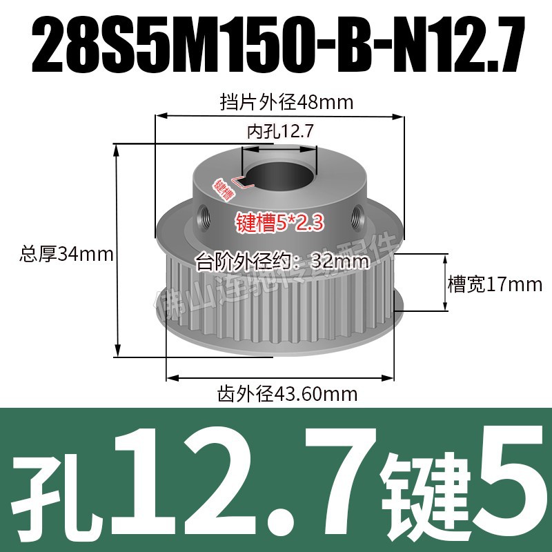 • 28개 치아-S5M-슬롯 폭 17-B-구멍 12.7 키 5