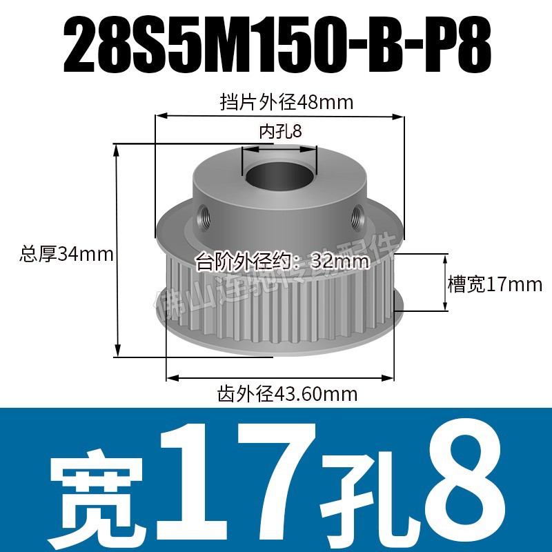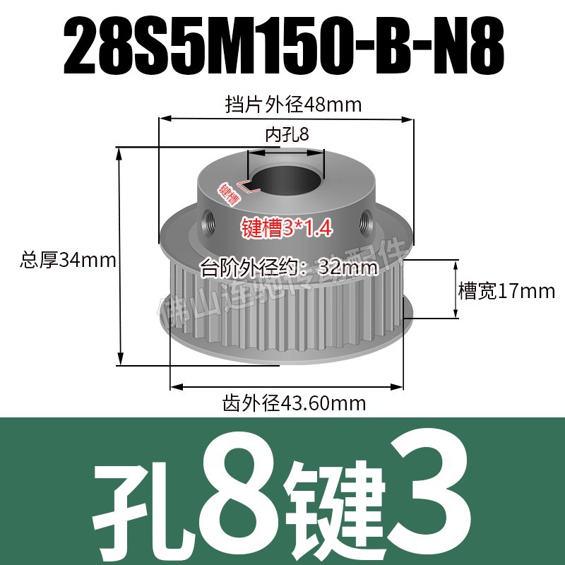 • 28개 치아-S5M-슬롯 폭 17-B-구멍 8 키 3*1.4