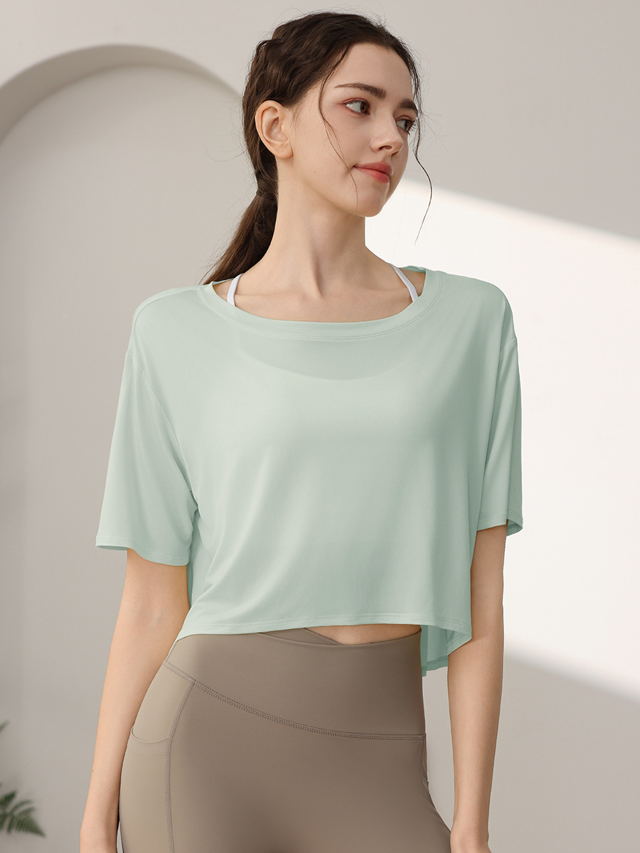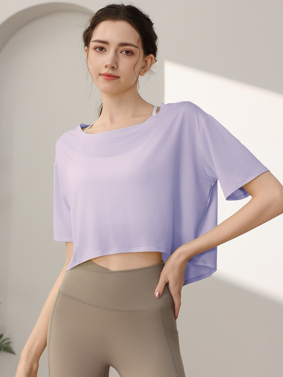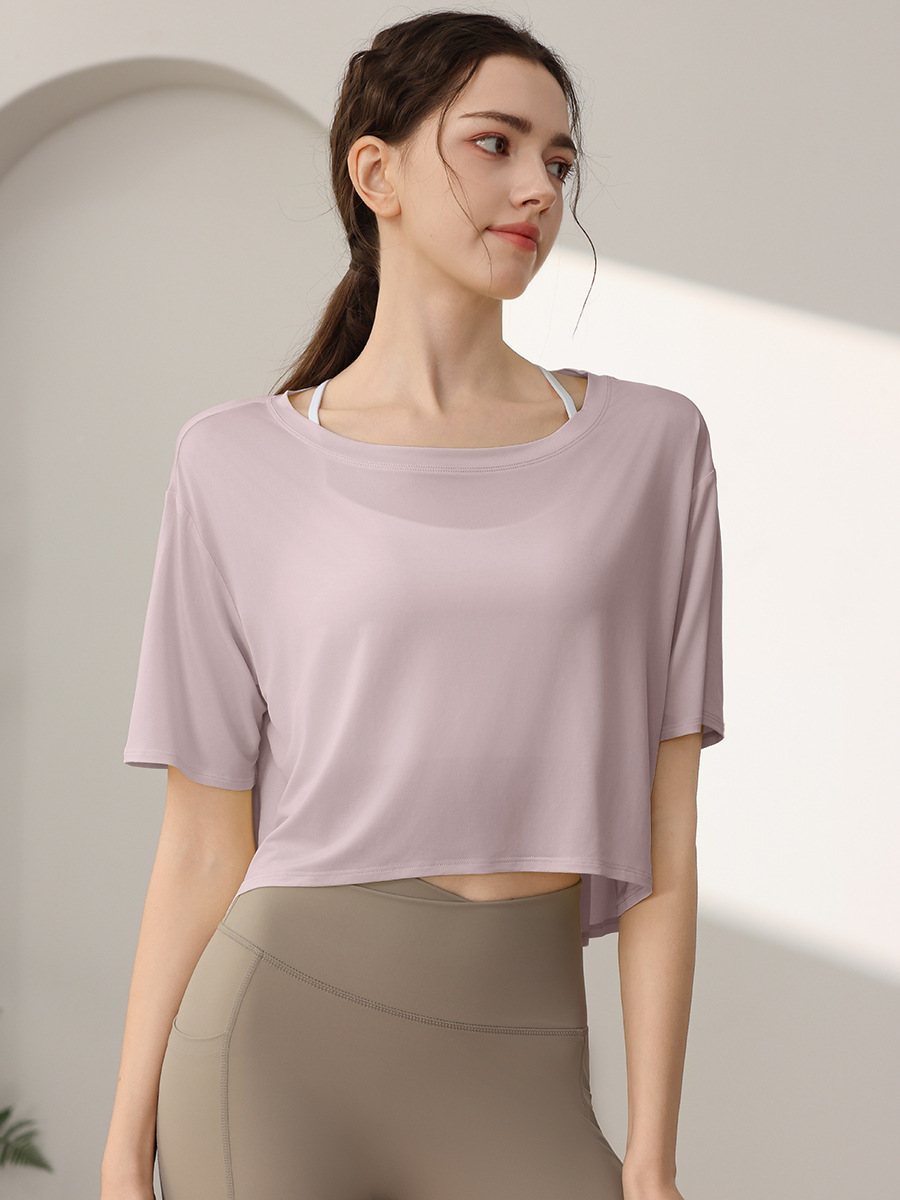 Tencel Loose 스포츠 반팔 블라우스 여성의 짧은 선 스크린 피트니스 탑 달리기 요가 옷 외부 티셔츠 여름