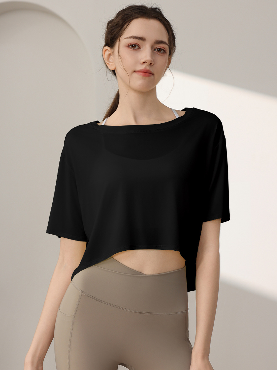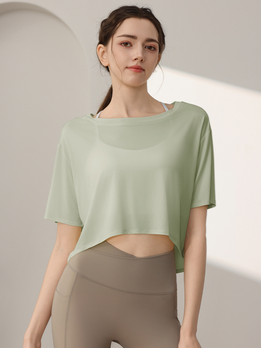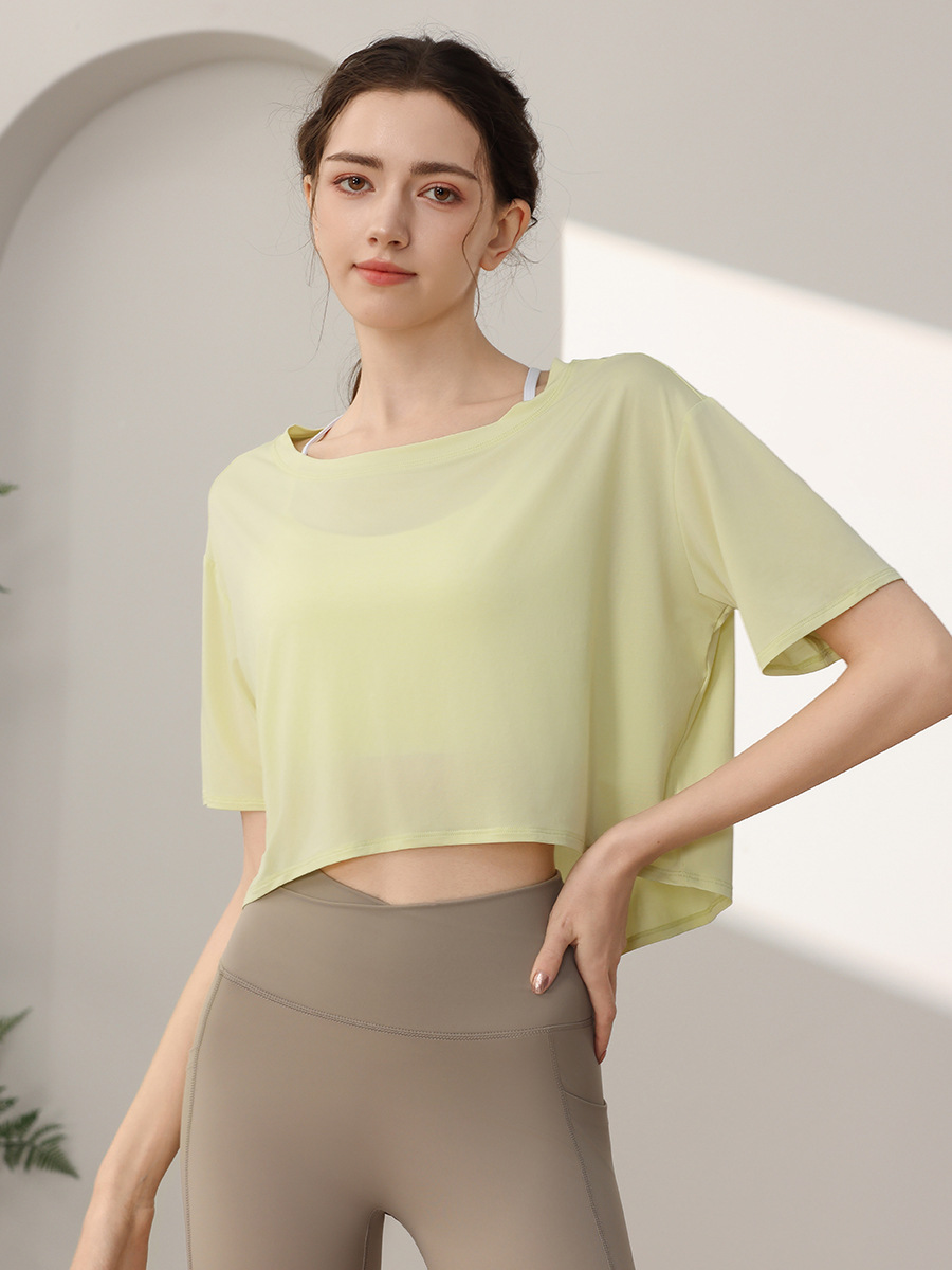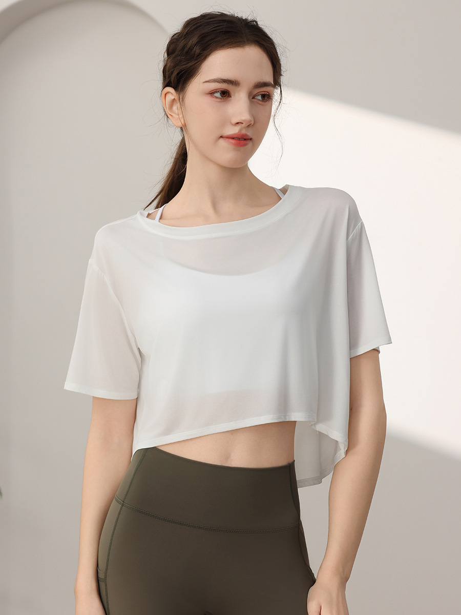 Tencel Loose 스포츠 반팔 블라우스 여성의 짧은 선 스크린 피트니스 탑 달리기 요가 옷 외부 티셔츠 여름