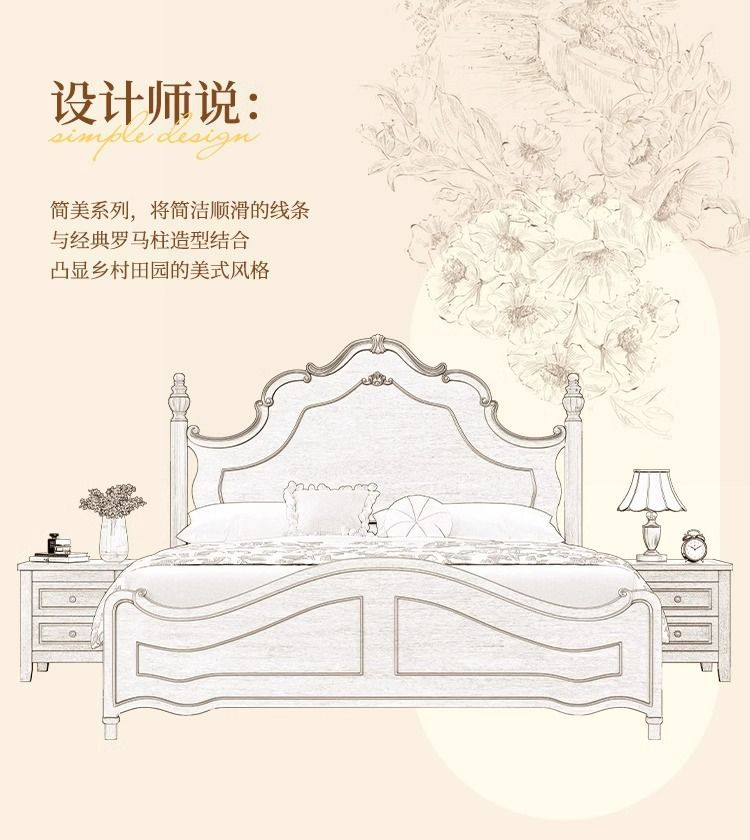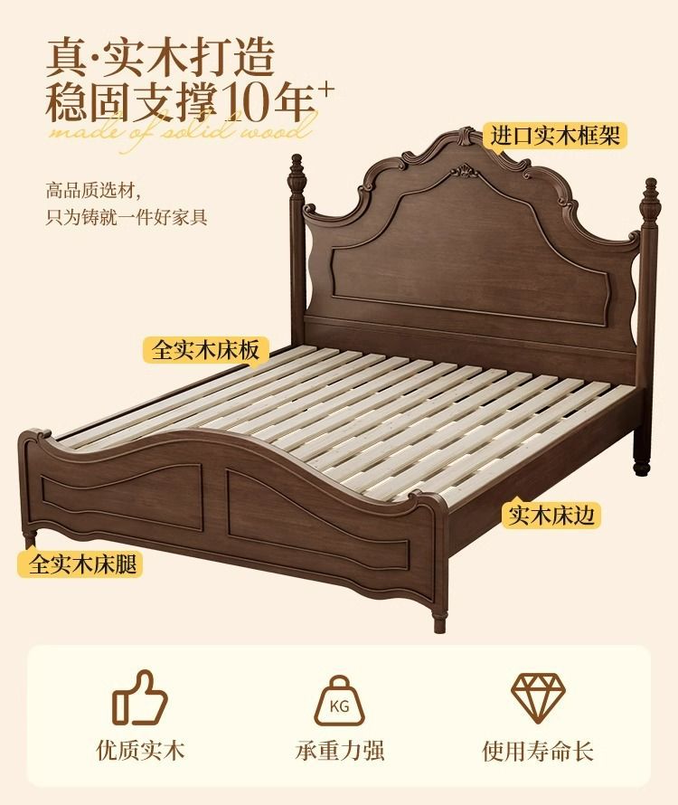 미국 단단한 나무 침대 1.5 m 프랑스 복고풍 안나 침대 1.8 m 마스터 침실 더블 중국 단단한 나무 침대