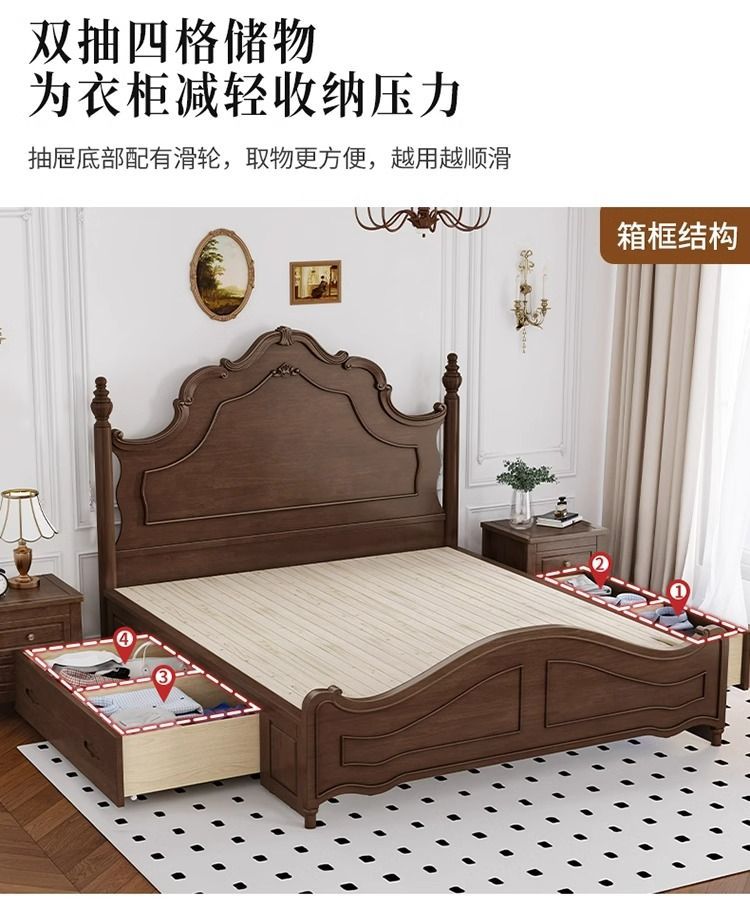 미국 단단한 나무 침대 1.5 m 프랑스 복고풍 안나 침대 1.8 m 마스터 침실 더블 중국 단단한 나무 침대스토어 가기