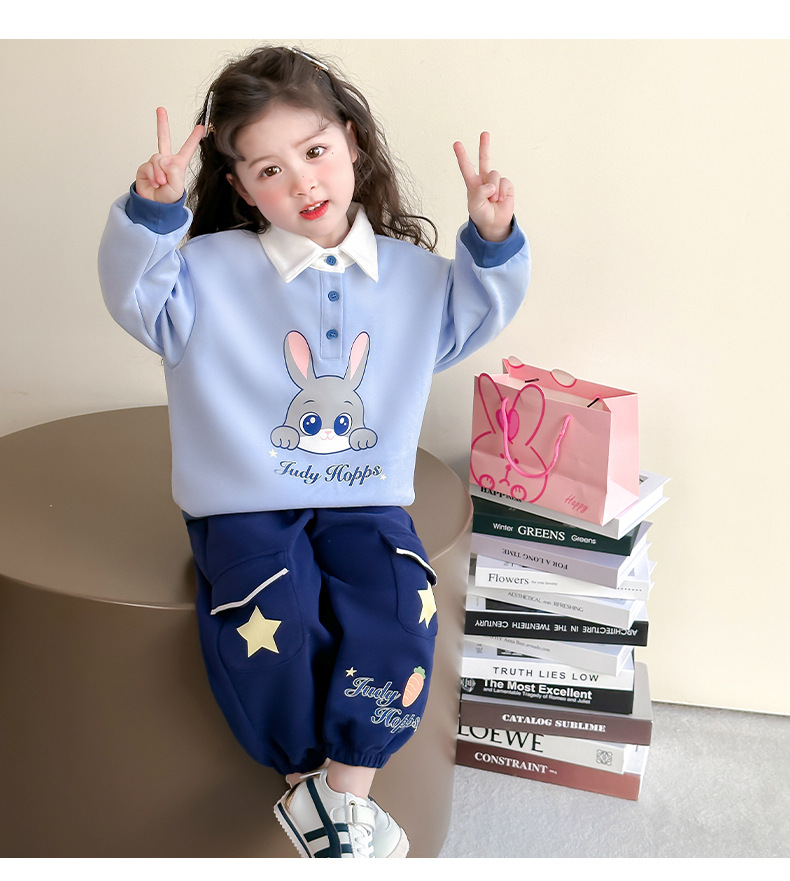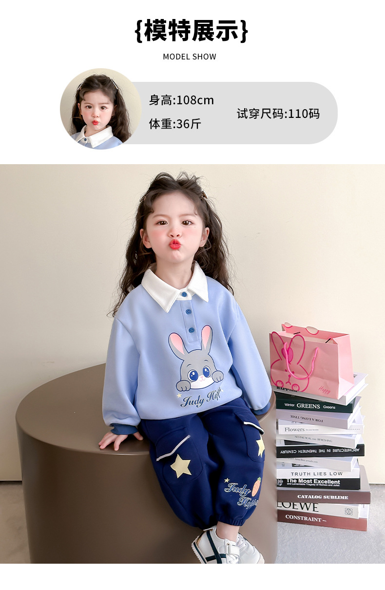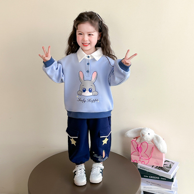 소녀의 봄 옷 세트 2025 새로운 어린이 토끼 경찰관 유행 투피스 아기의 봄과 가을 옷스토어 가기