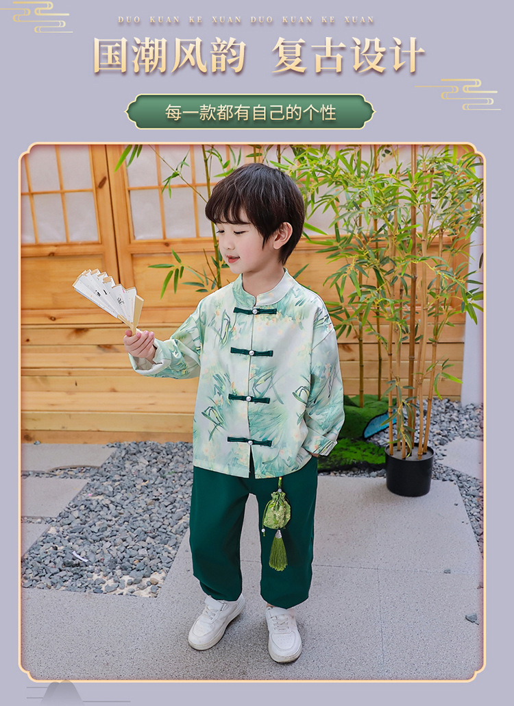 신상 소년 봄 어린이 중국 스타일 세트 어린이 탕 세트 한푸 어린 소년의 복고풍 민족 스타일 아동복스토어 가기