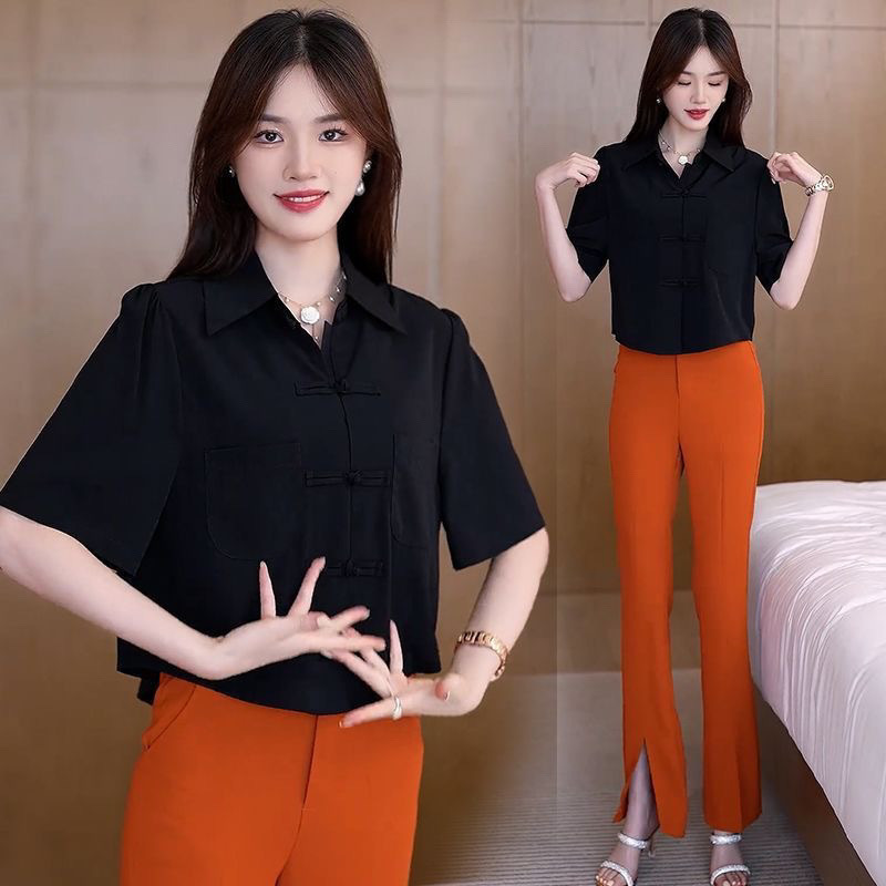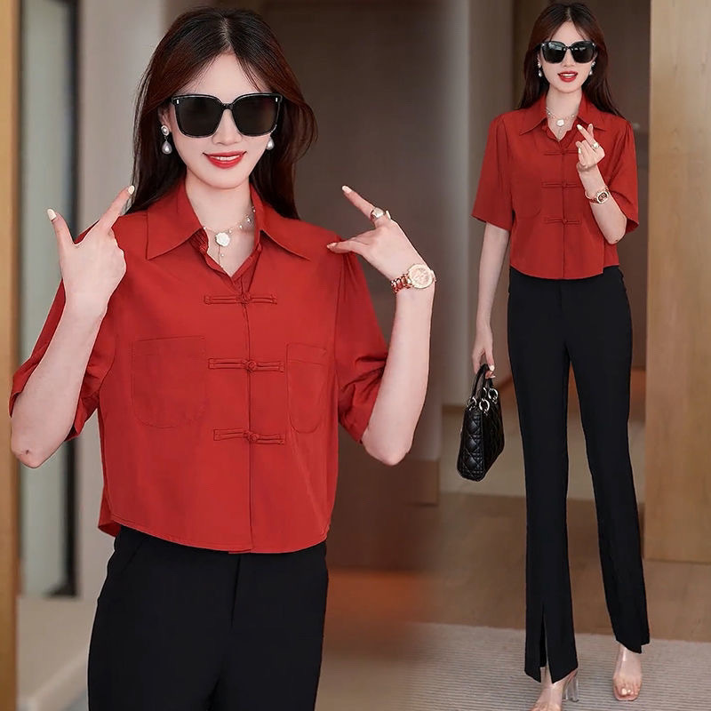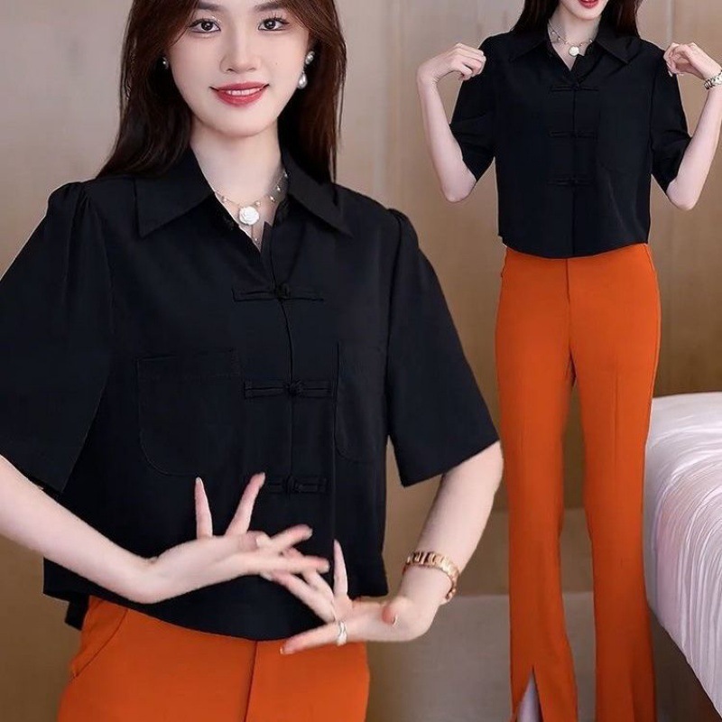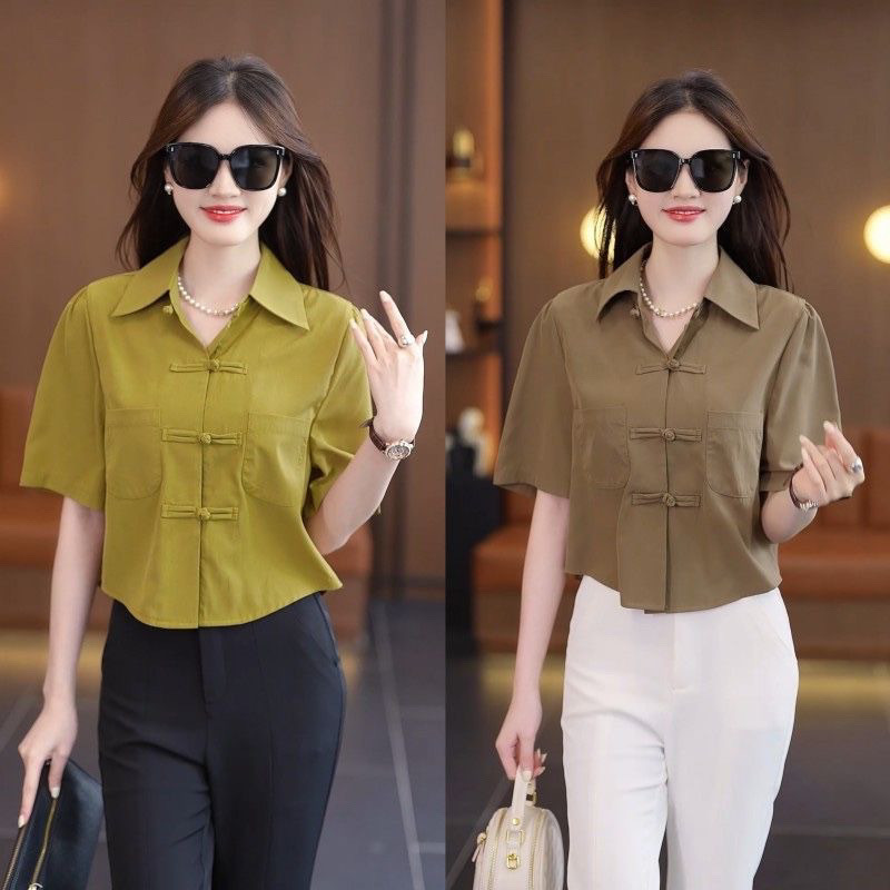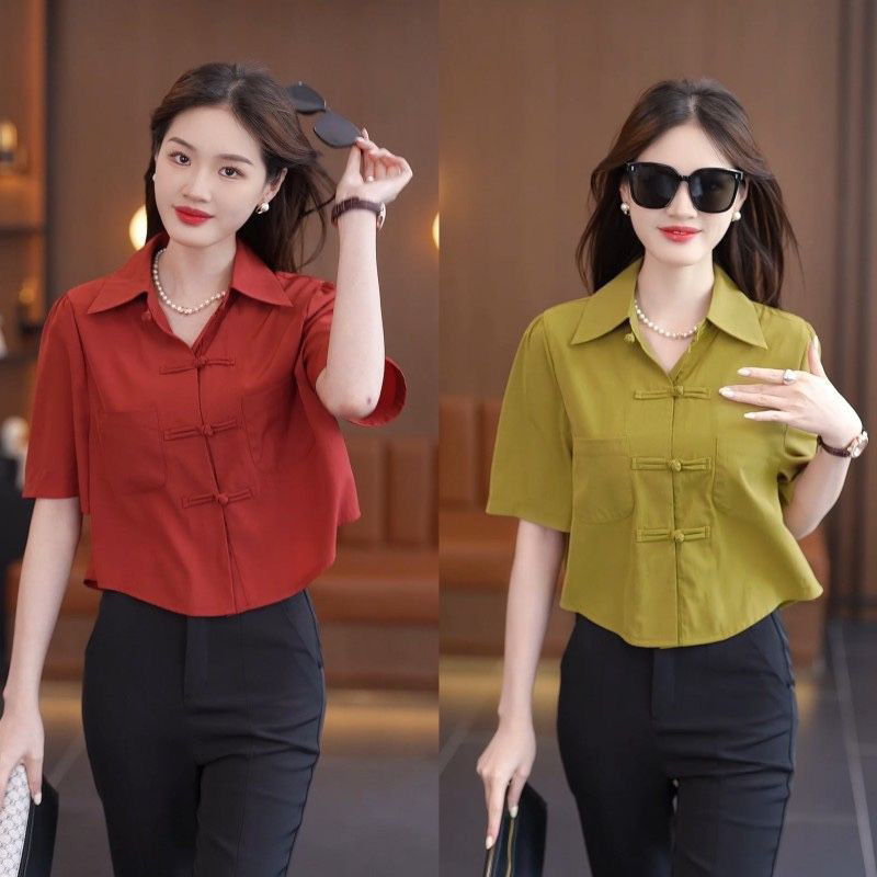유럽 빈티지 쉬폰 셔츠 여성 여름 2025 새로운 국가 스타일 버튼 작은 셔츠 버블 소매 짧은 상단 색상
