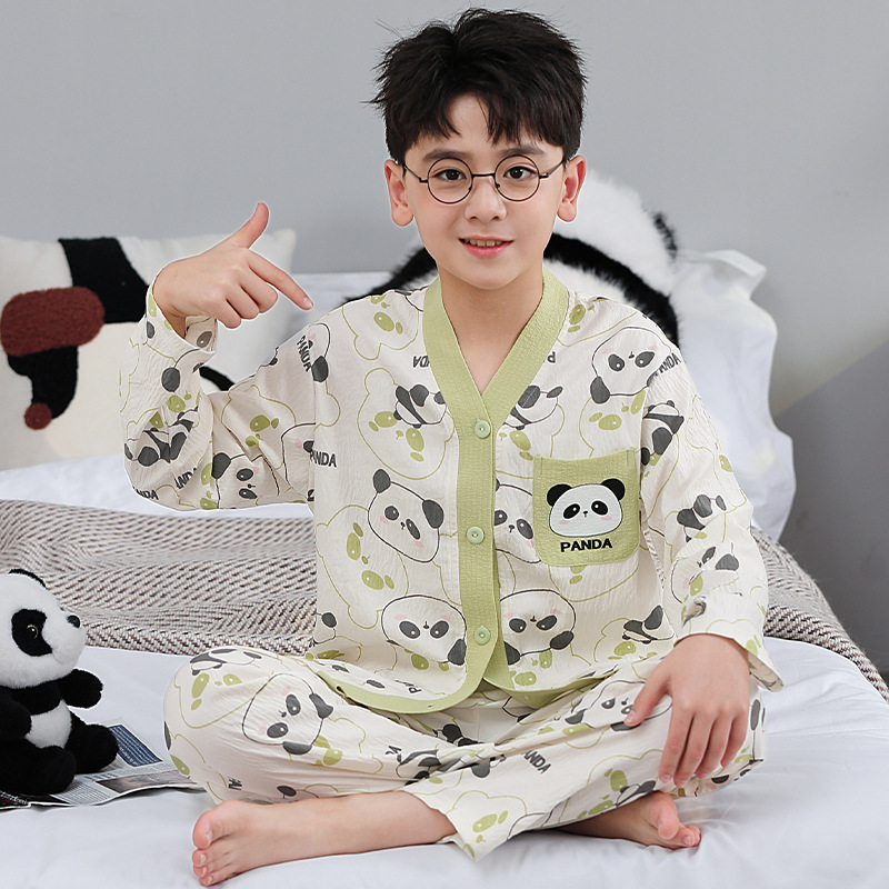 어린이 잠옷 소년 봄과 가을 긴 소매 얇은 2025 새로운 만화 중 큰 어린이 집 옷 여름 소년 세트스토어 가기