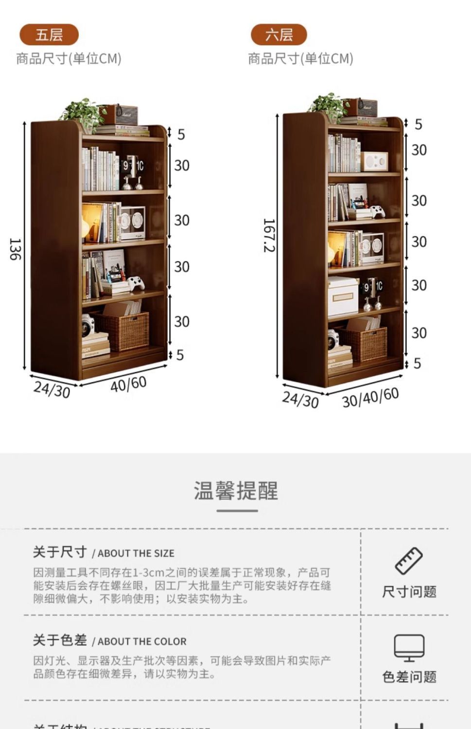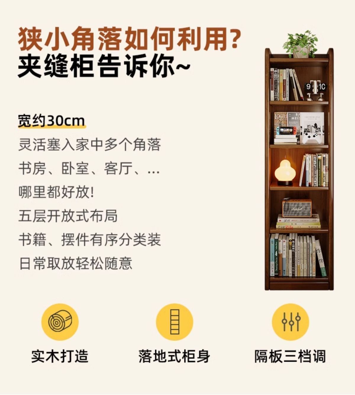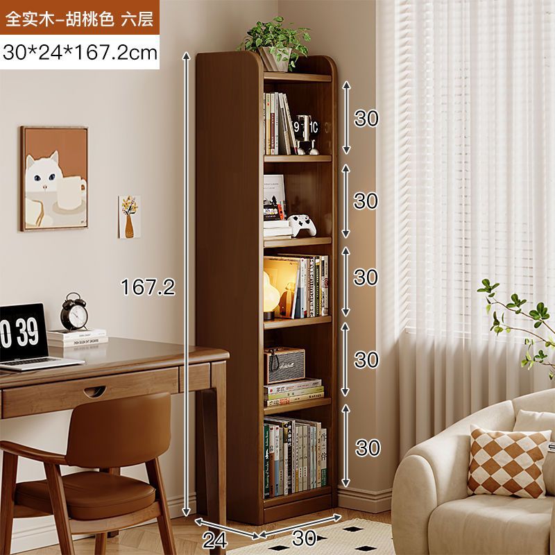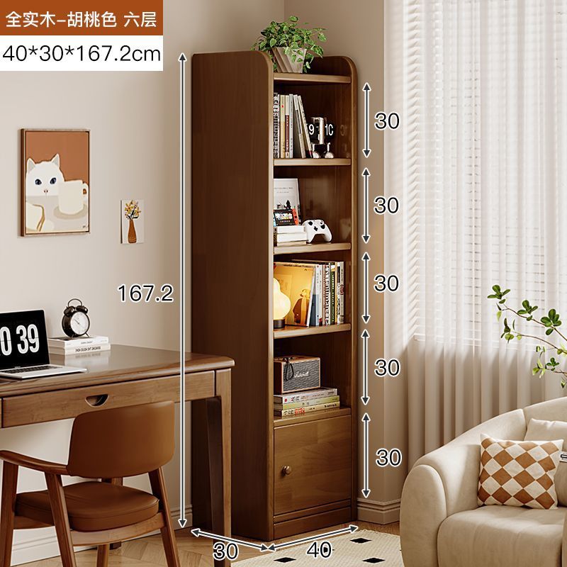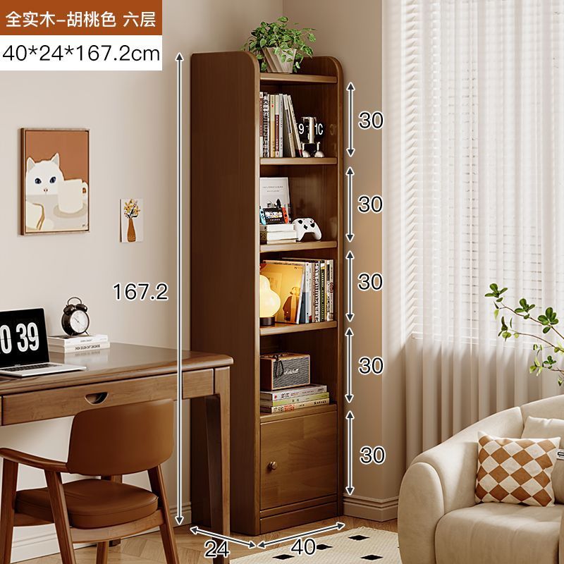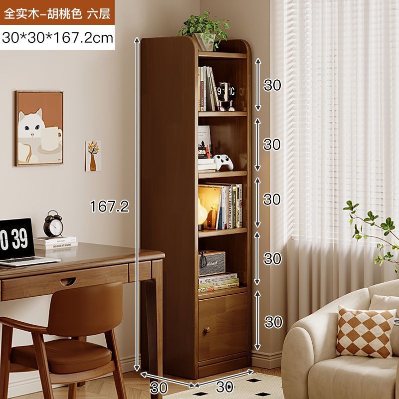 단단한 나무 책장 보관 선반 바닥 간단한 가정용 다층 거실 캐비닛 보관 캐비닛 좁은 슬릿 책장 벽 보관스토어 가기