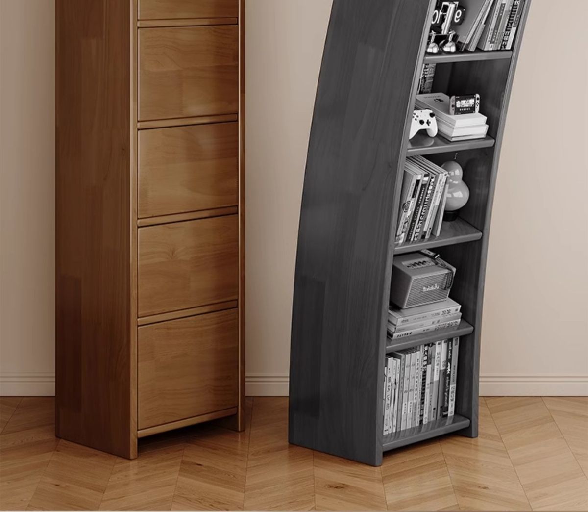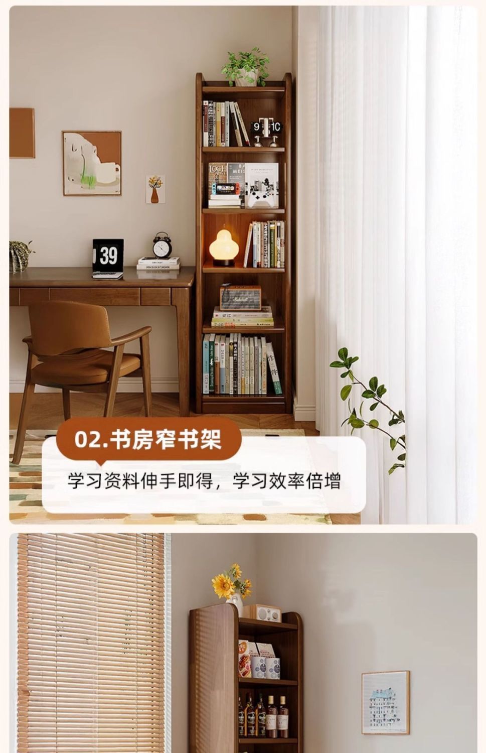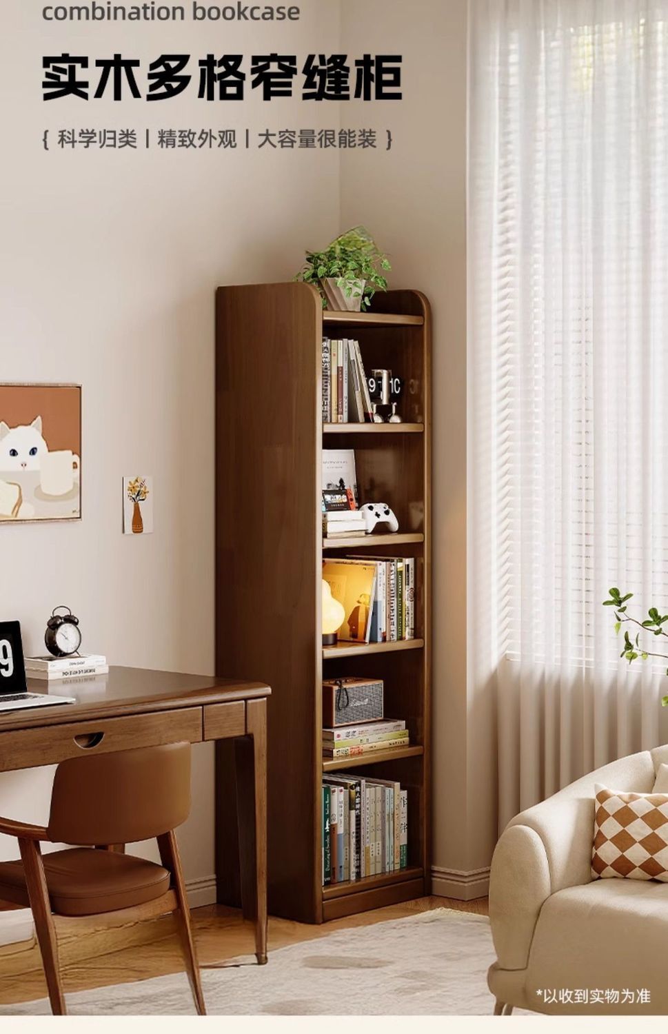 단단한 나무 책장 보관 선반 바닥 간단한 가정용 다층 거실 캐비닛 보관 캐비닛 좁은 슬릿 책장 벽 보관