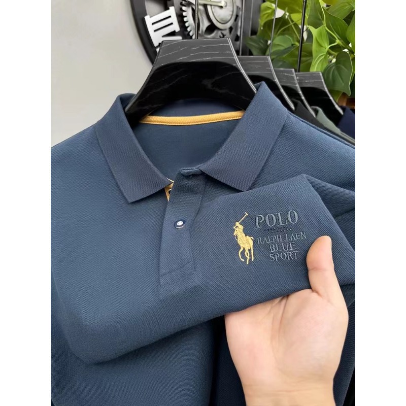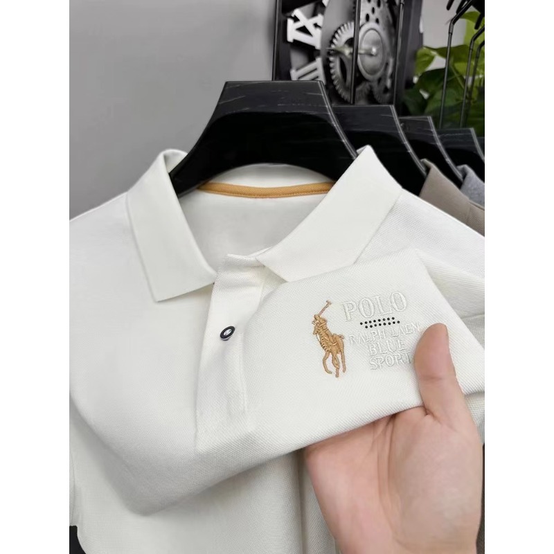 비즈니스 반팔 셔츠 남성 여름 미국 스포츠 자수 옷깃 통기성 반팔 티셔츠 남성 2024 봄과 가을 새로운 남성스토어 가기