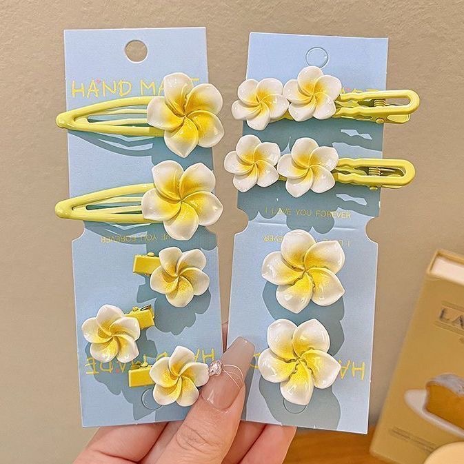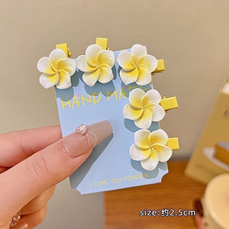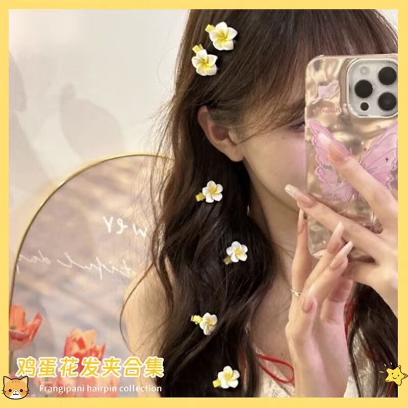달걀꽃 모양 핑크 꽃 머리핀 귀여운 아기 옆머리핀 앞머리 잔머리핀 헤어 액세서리 도매 덕빌핀