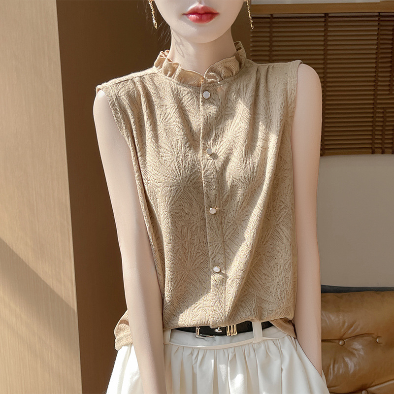 여성 레이스 칼라 민소매 셔츠 니트 세트 베이스 셔츠와 새로운 폭발 하이 엔드 카미 솔스토어 가기