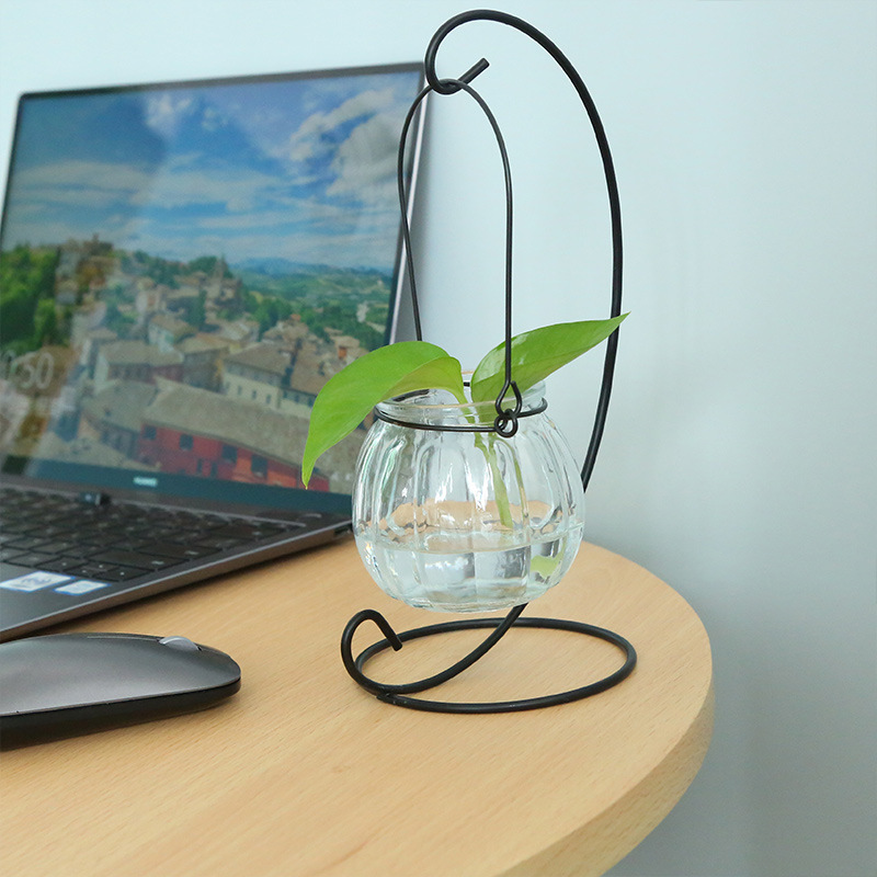 창조적 인 철 프레임 수경 녹색 장미 유리 꽃병 컨테이너 분지 사무실 실내 데스크탑 녹색 식물 현대 장식품 장식스토어 가기