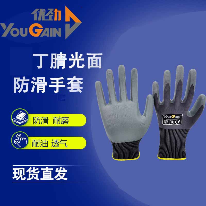 13핀 나일론 니트릴 미끄럼 방지 및 내마모성 점착 건설 현장 장갑, 점착 보호 노동 보호 장갑, 내유성 및 통기성스토어 가기