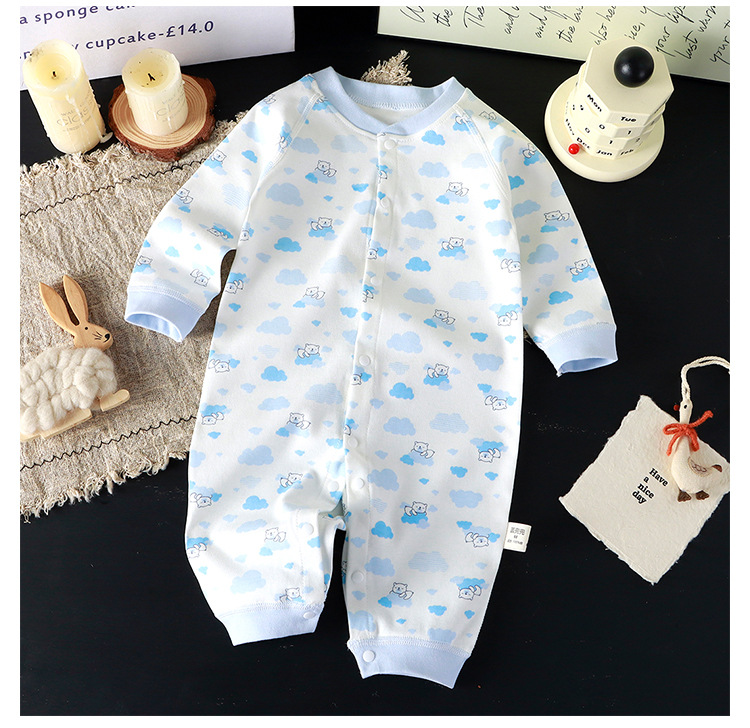 신생아 코튼 슬리프 수트 아기 파자마 사계절 등반 세트 신생아 뼈없는 긴 소매베이스 모자 셔츠스토어 가기
