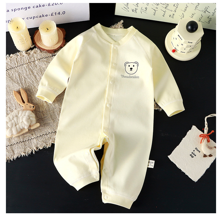 신생아 코튼 슬리프 수트 아기 파자마 사계절 등반 세트 신생아 뼈없는 긴 소매베이스 모자 셔츠
