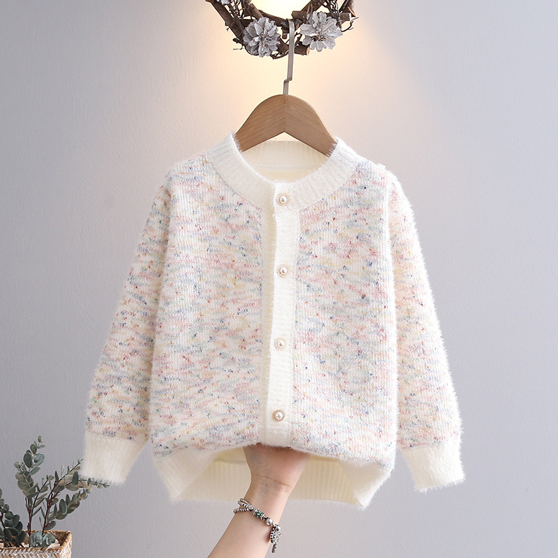 소녀 니트 카디건 가을 2024 새로운 도착 소녀의 올 매치 탑 세련된 어린이 샤넬 스타일 스웨터 코트