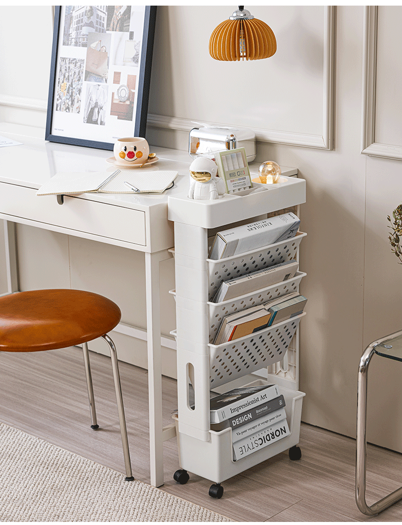 可移动教室桌边书架书桌书本收纳架书置物架夹缝书收纳推车杂志架