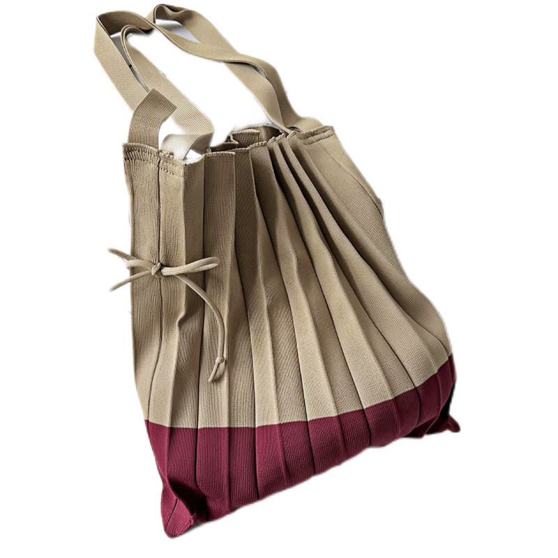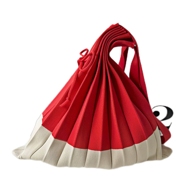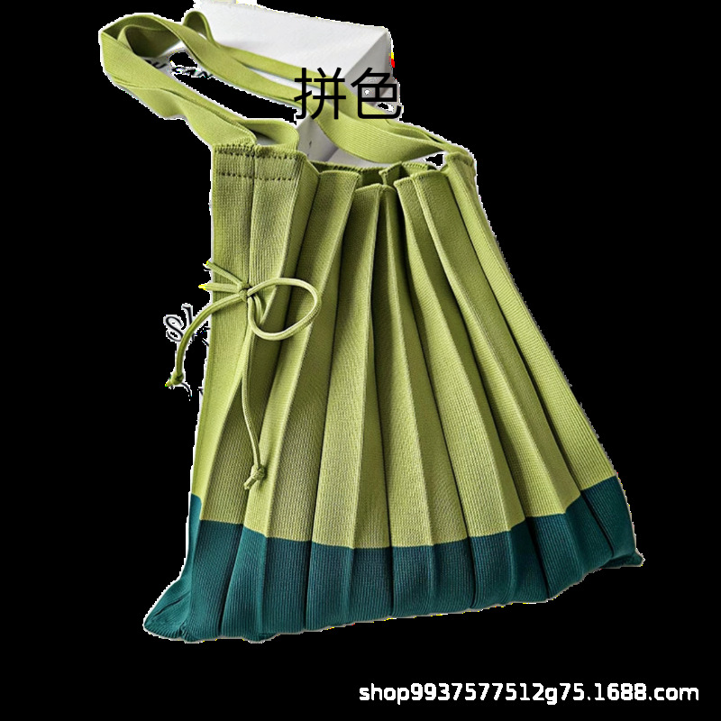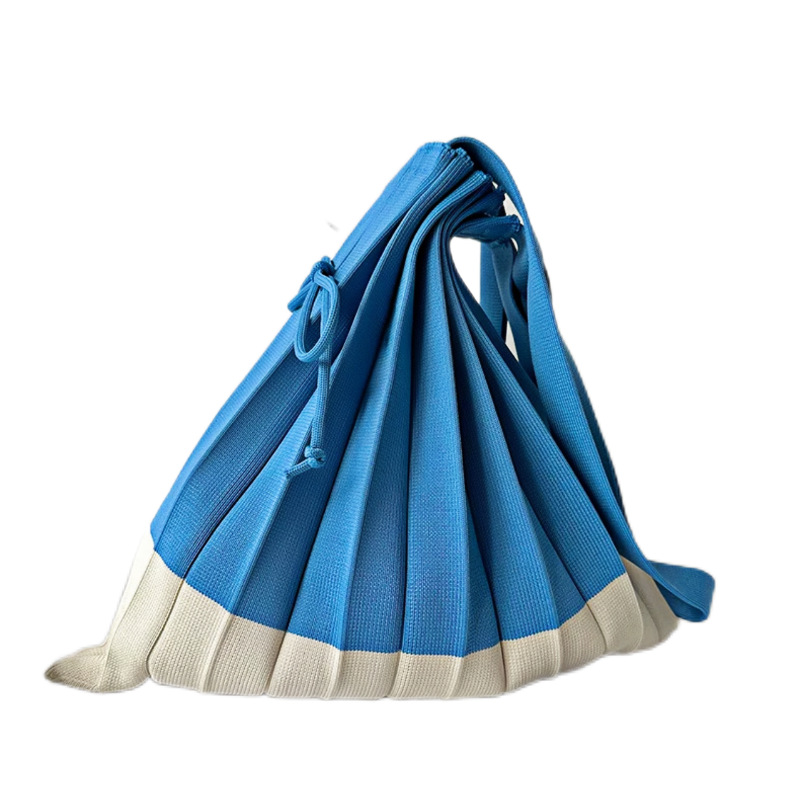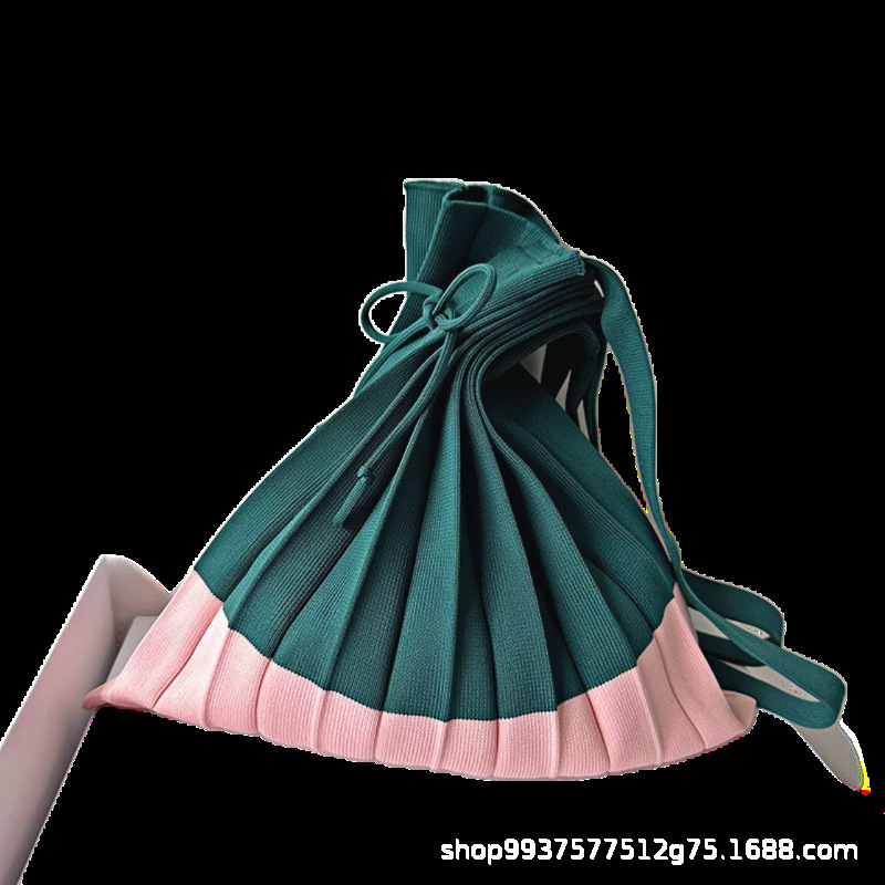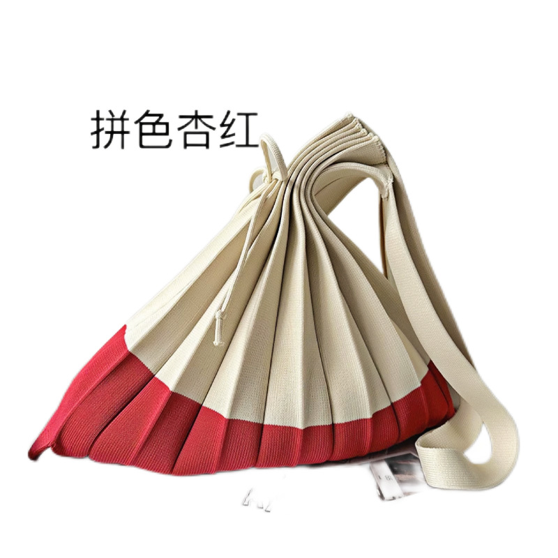 고급스러운 배색 대용량 스트라이프 니트 핸드백, 접이식 크로스백, 트렌디한 크로스백, 주름 크로스백