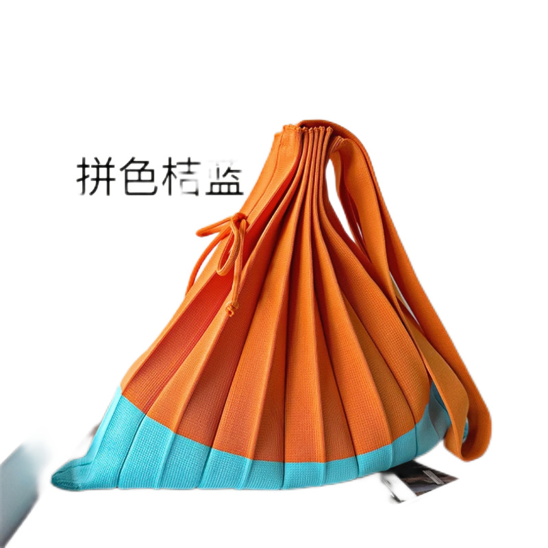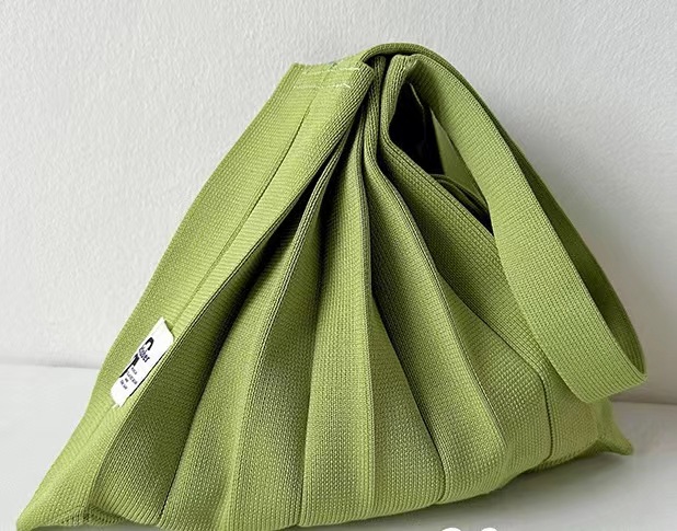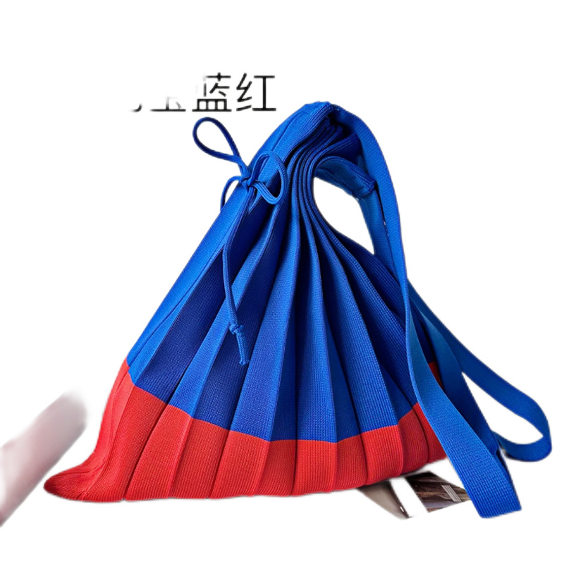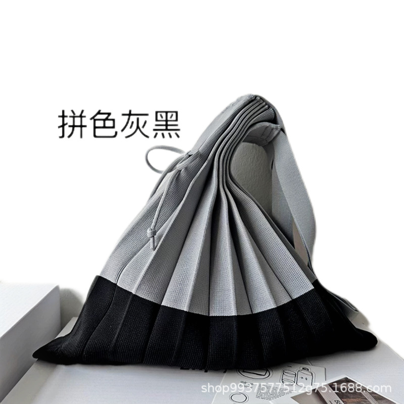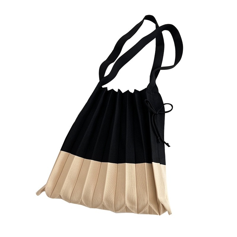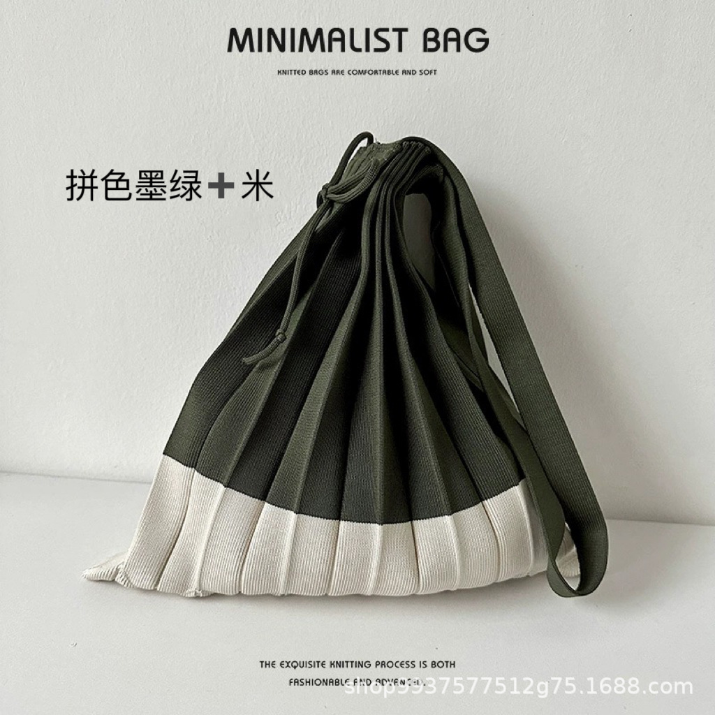 고급스러운 배색 대용량 스트라이프 니트 핸드백, 접이식 크로스백, 트렌디한 크로스백, 주름 크로스백
