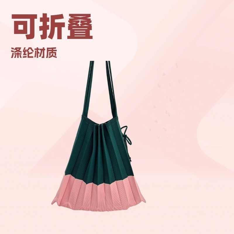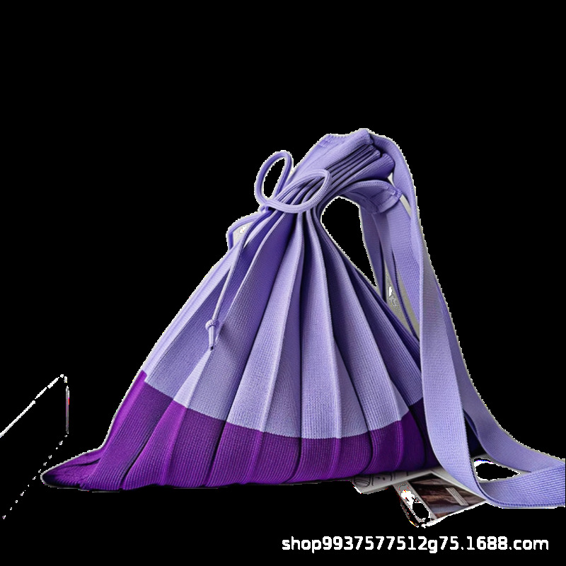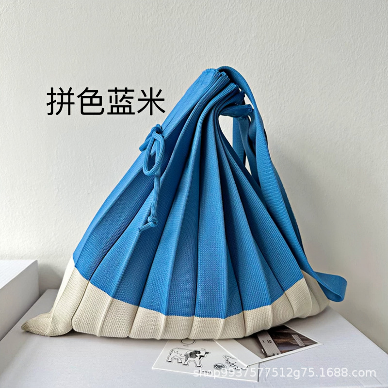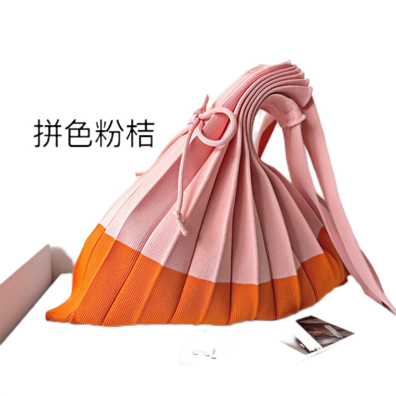 고급스러운 배색 대용량 스트라이프 니트 핸드백, 접이식 크로스백, 트렌디한 크로스백, 주름 크로스백스토어 가기