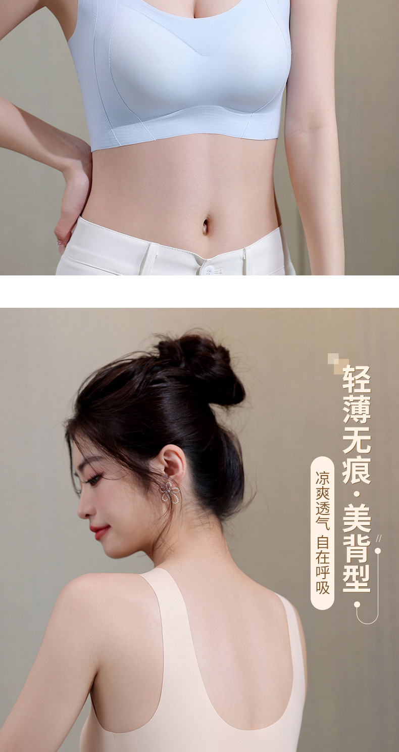 Tracless 속옷 여성의 작은 가슴 푸쉬 업 처지 방지 아름다운 뒤로 여름 얇은 통기성 스포츠 조끼 브라스토어 가기