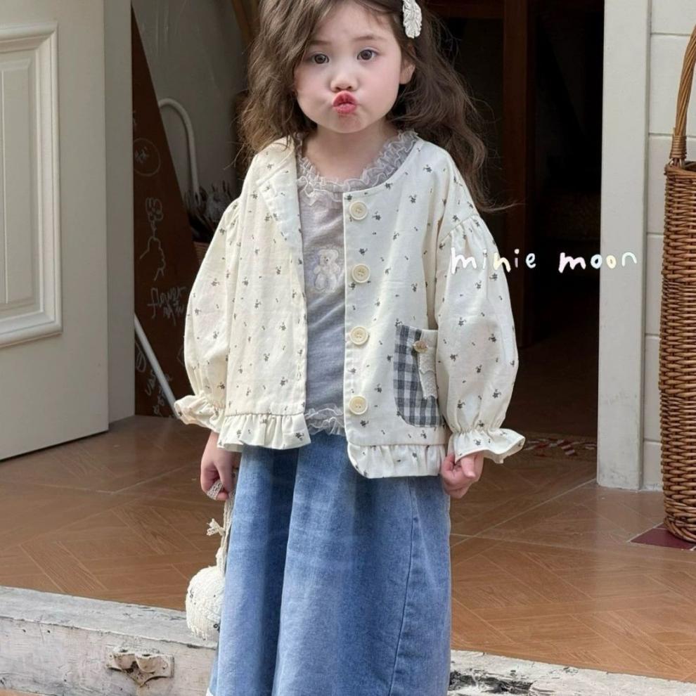 서양식 아동복 2025 봄 새로운 소녀 한국 스타일 면화 달콤한 꽃 무늬 포켓 서양식 코트스토어 가기