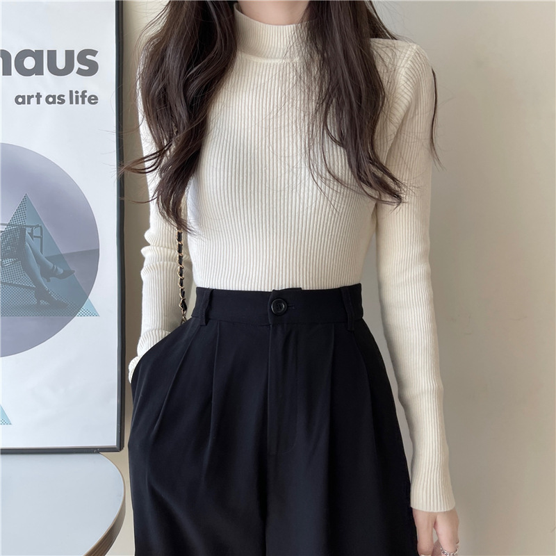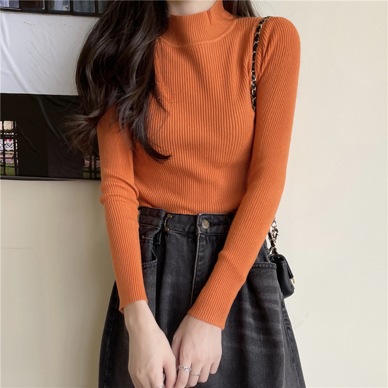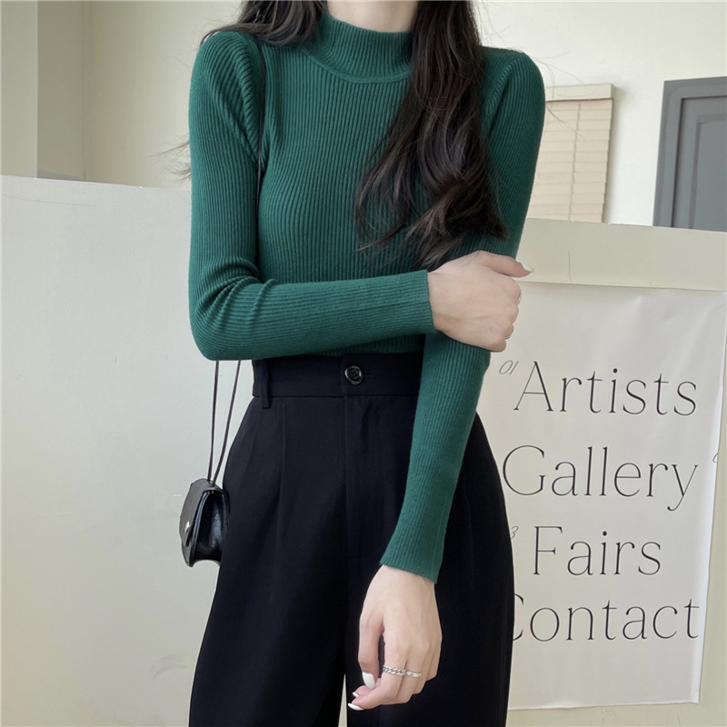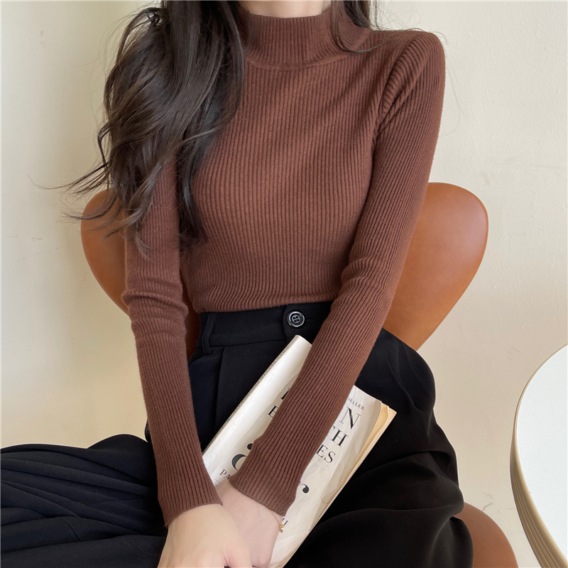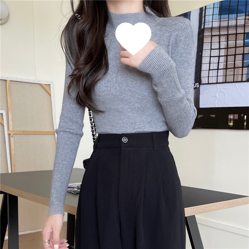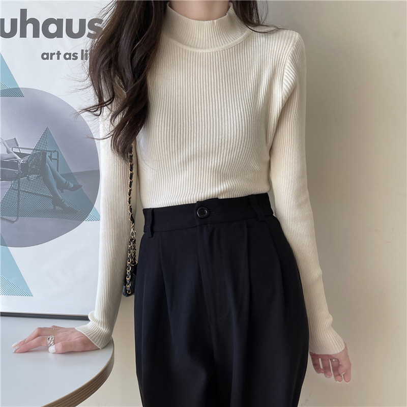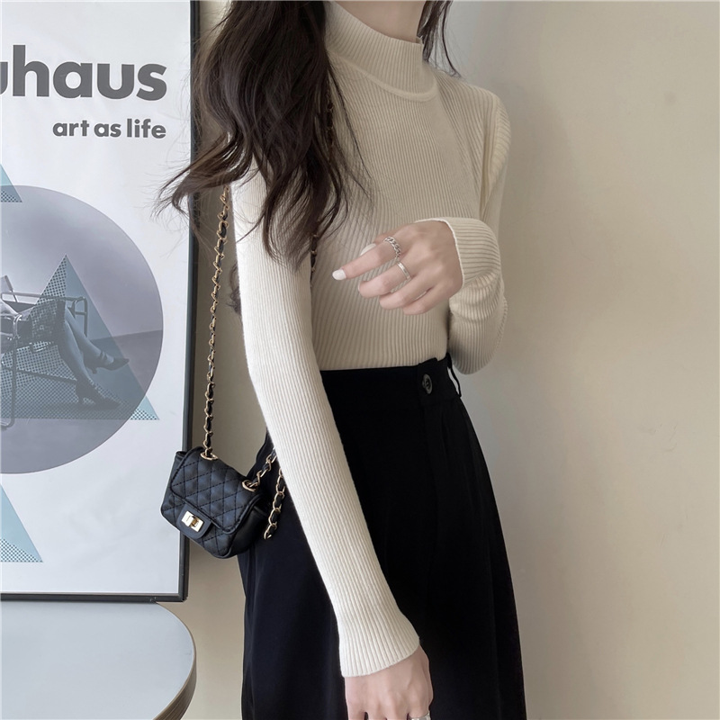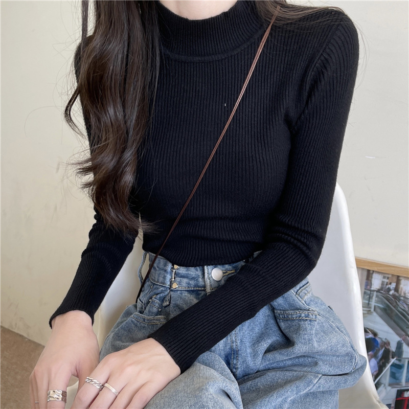 새로운 폭발 틈새 반 터틀넥 스웨터 블랙 긴 소매 니트 스웨터 여성용 가을 및 겨울 내부 단단한 머리 보호