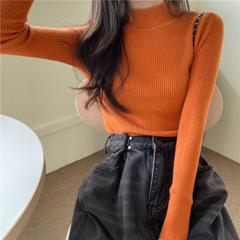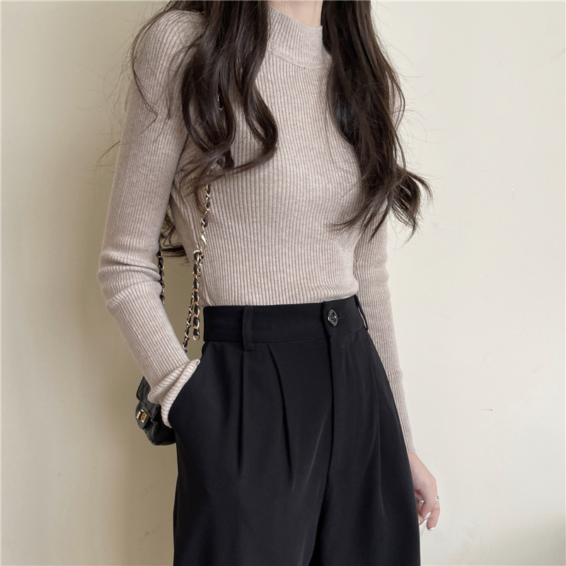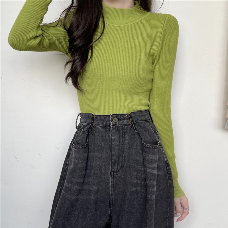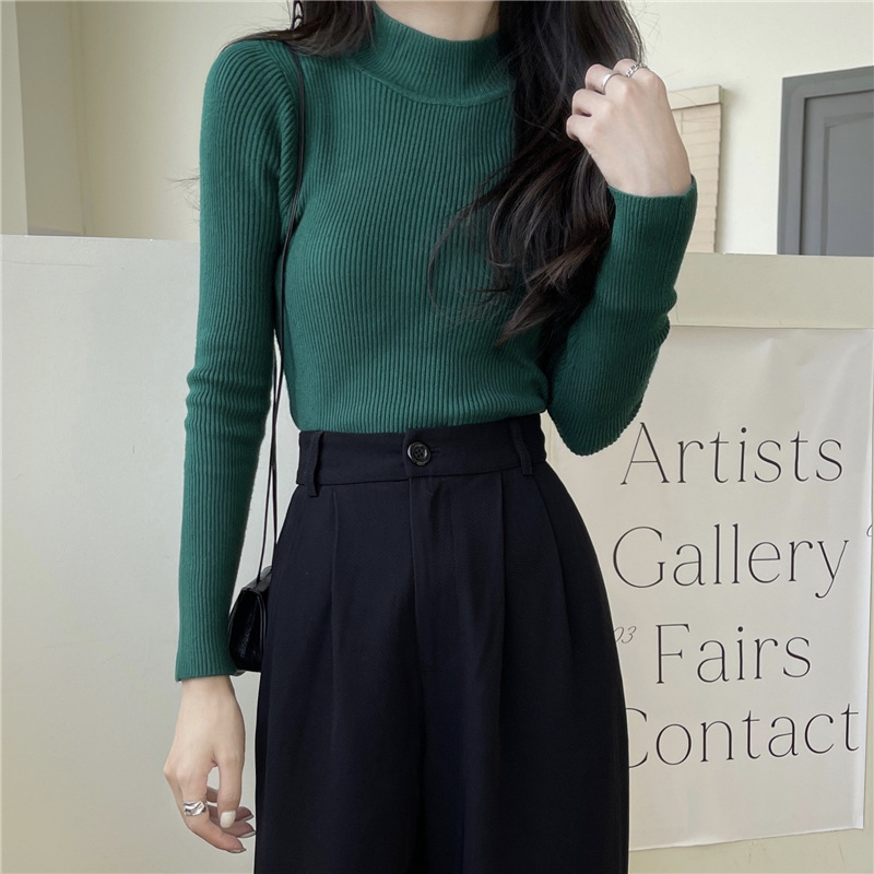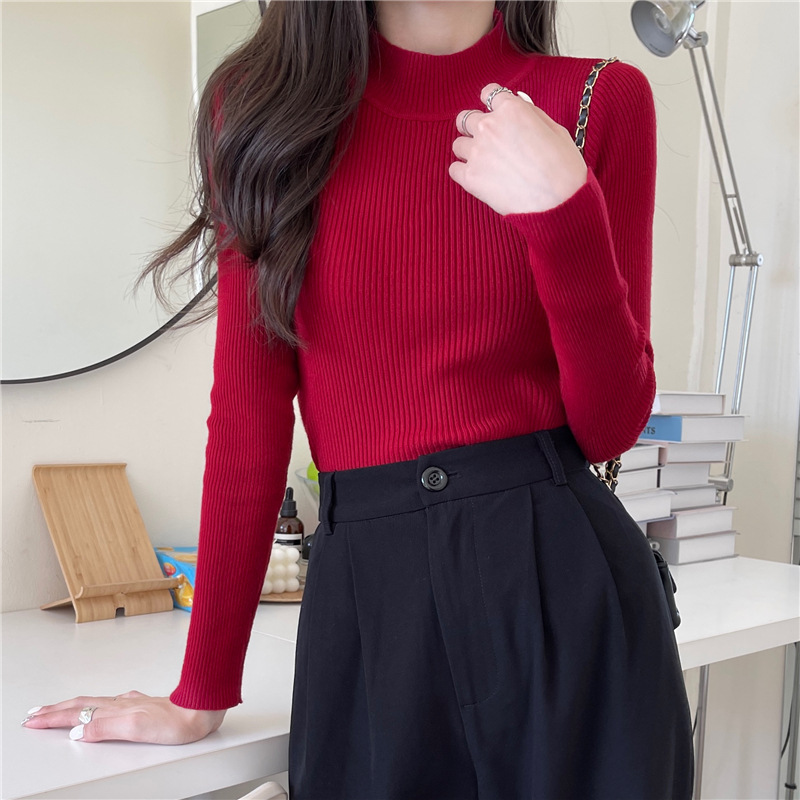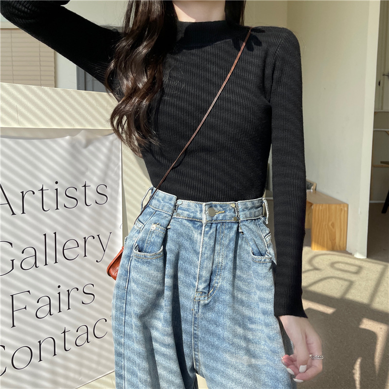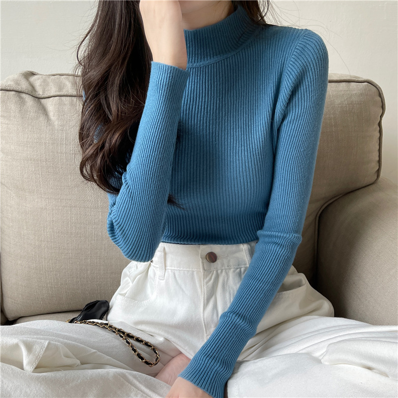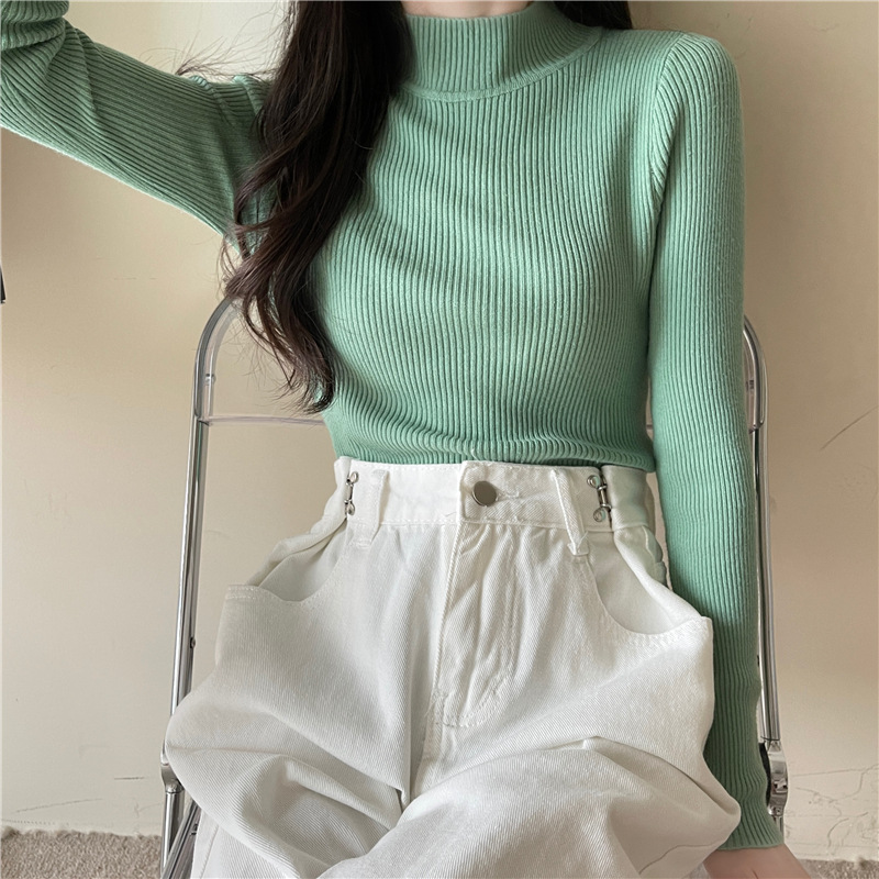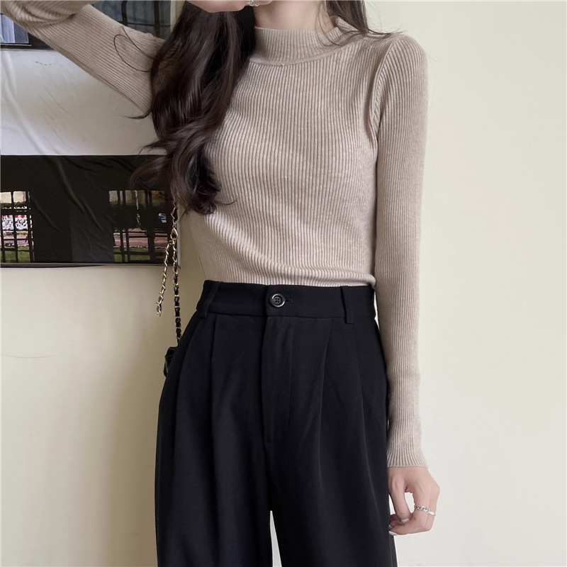 새로운 폭발 틈새 반 터틀넥 스웨터 블랙 긴 소매 니트 스웨터 여성용 가을 및 겨울 내부 단단한 머리 보호