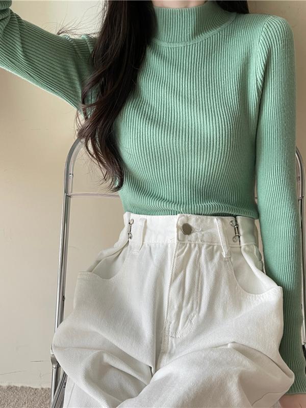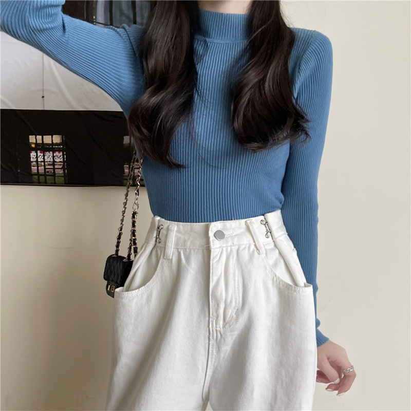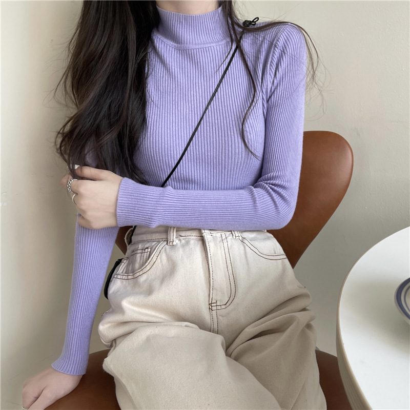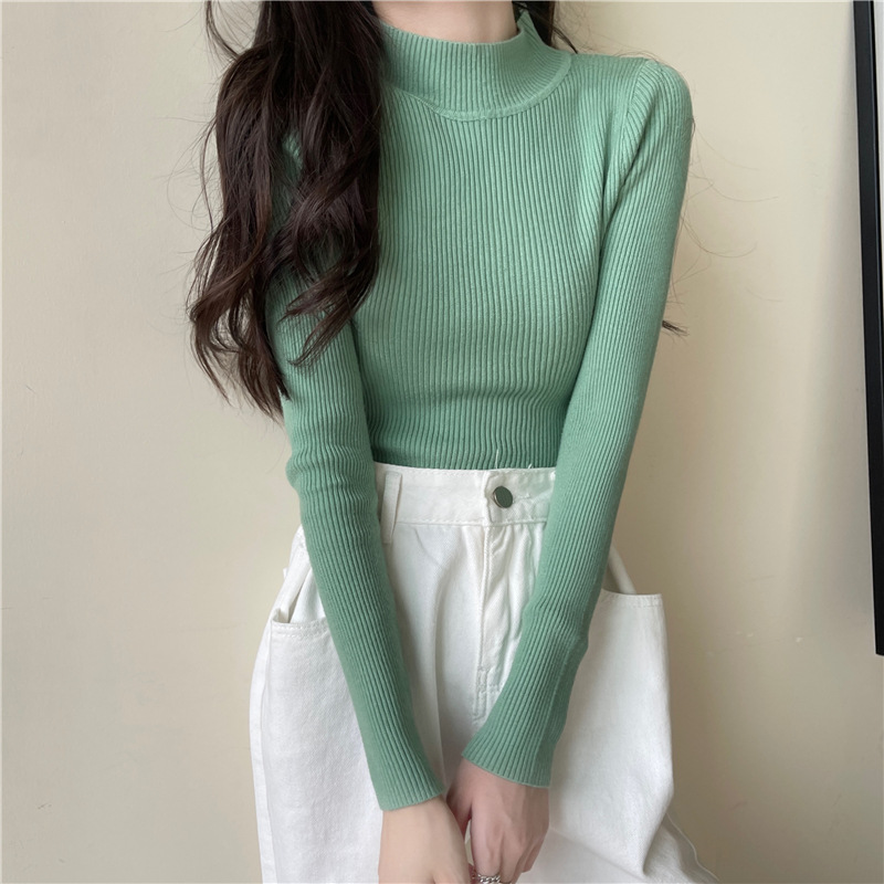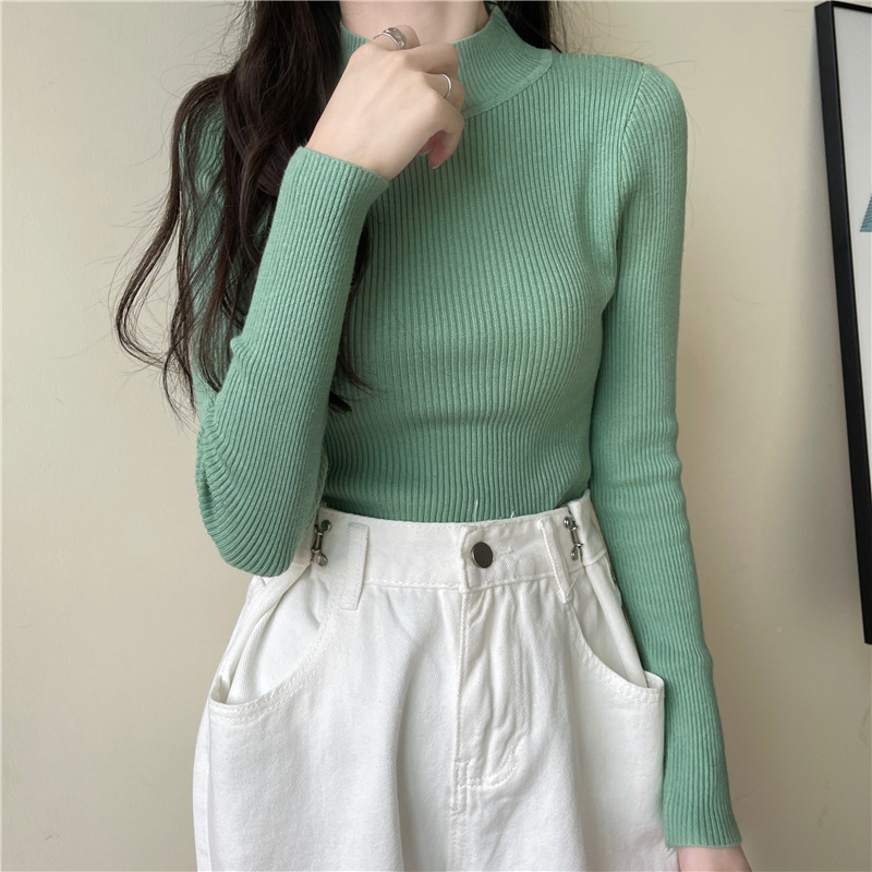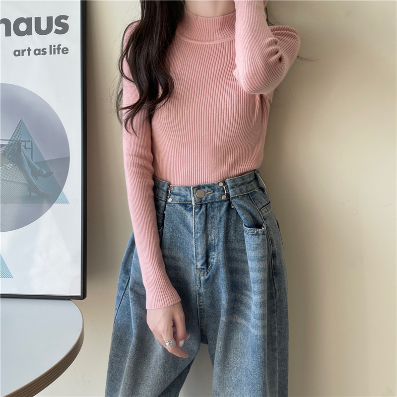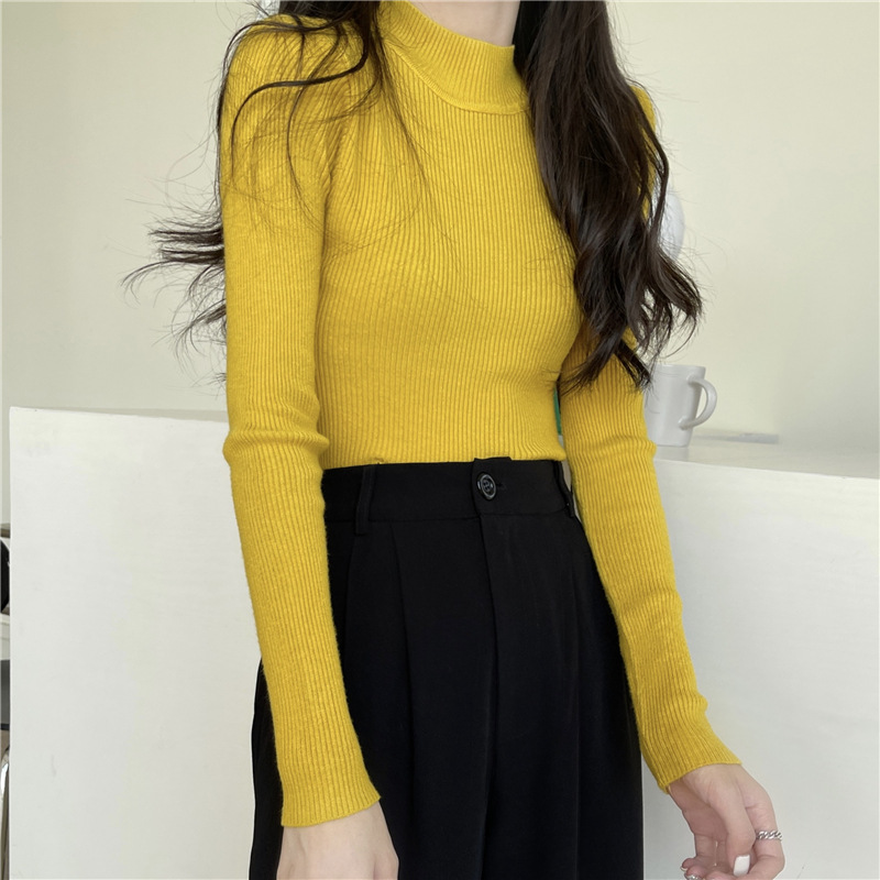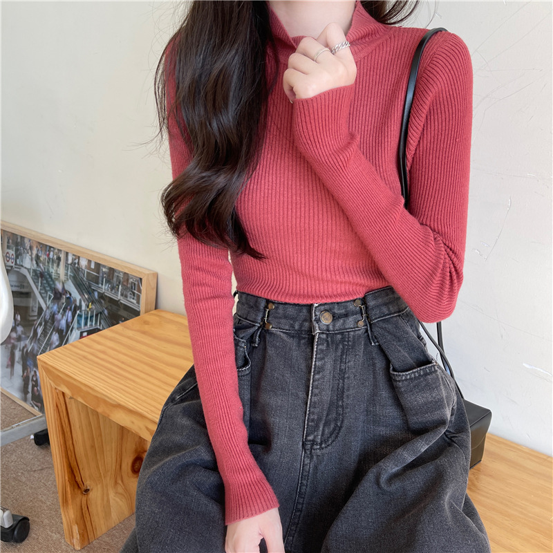 새로운 폭발 틈새 반 터틀넥 스웨터 블랙 긴 소매 니트 스웨터 여성용 가을 및 겨울 내부 단단한 머리 보호