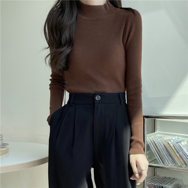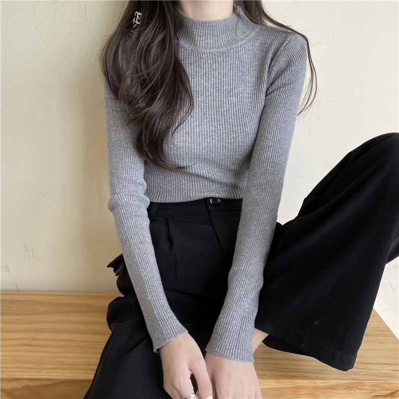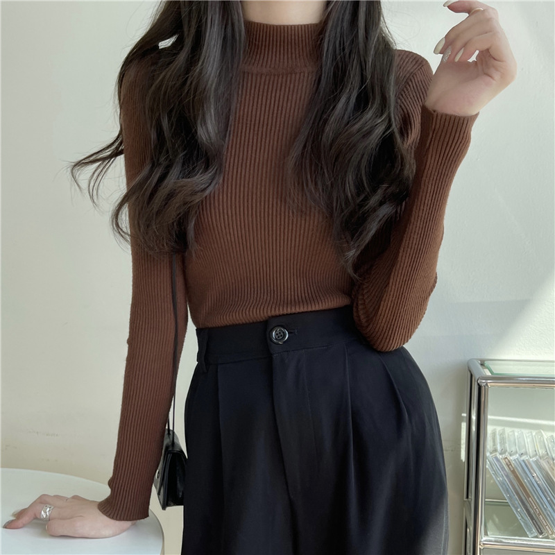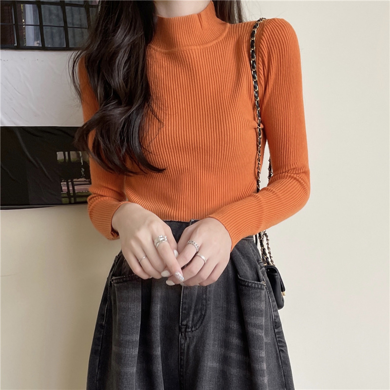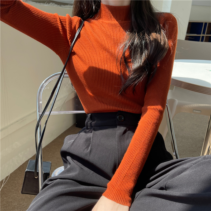 새로운 폭발 틈새 반 터틀넥 스웨터 블랙 긴 소매 니트 스웨터 여성용 가을 및 겨울 내부 단단한 머리 보호스토어 가기