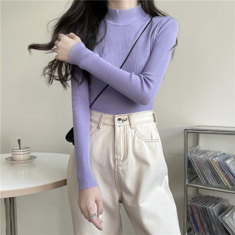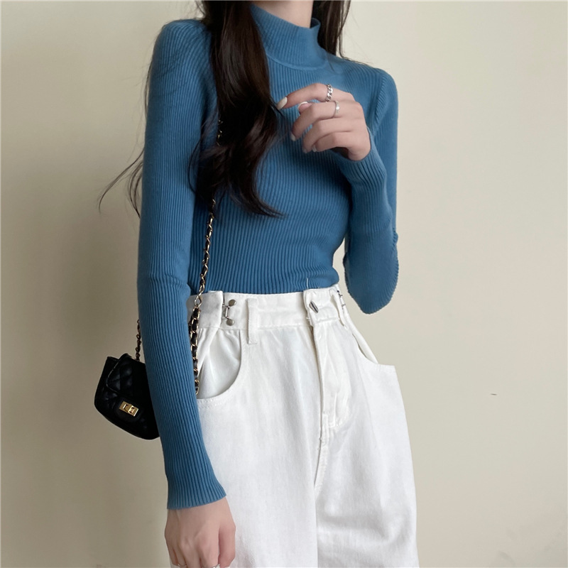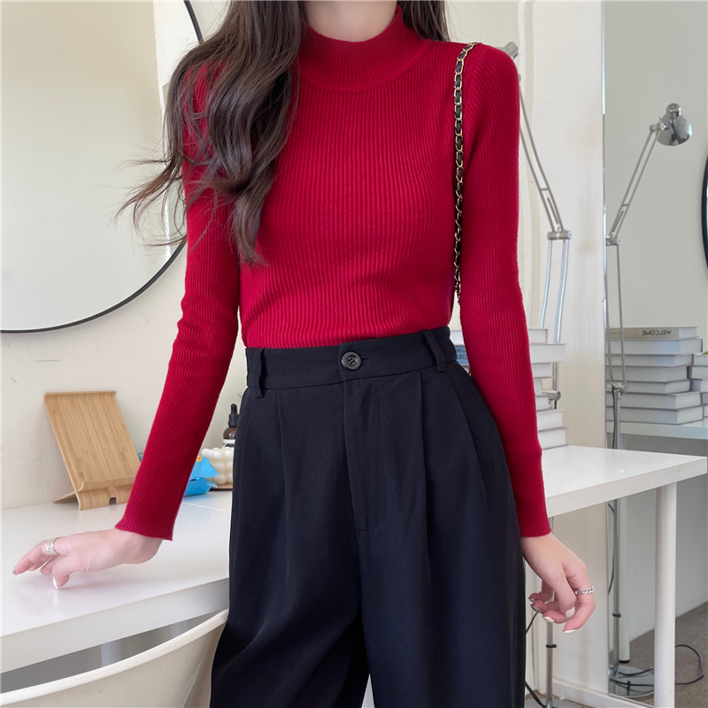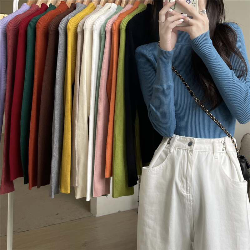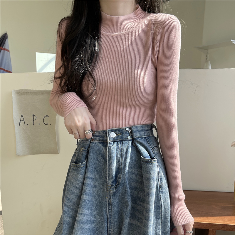 새로운 폭발 틈새 반 터틀넥 스웨터 블랙 긴 소매 니트 스웨터 여성용 가을 및 겨울 내부 단단한 머리 보호스토어 가기