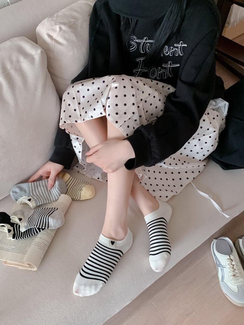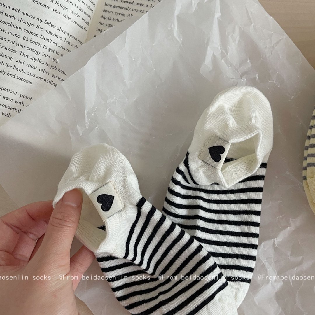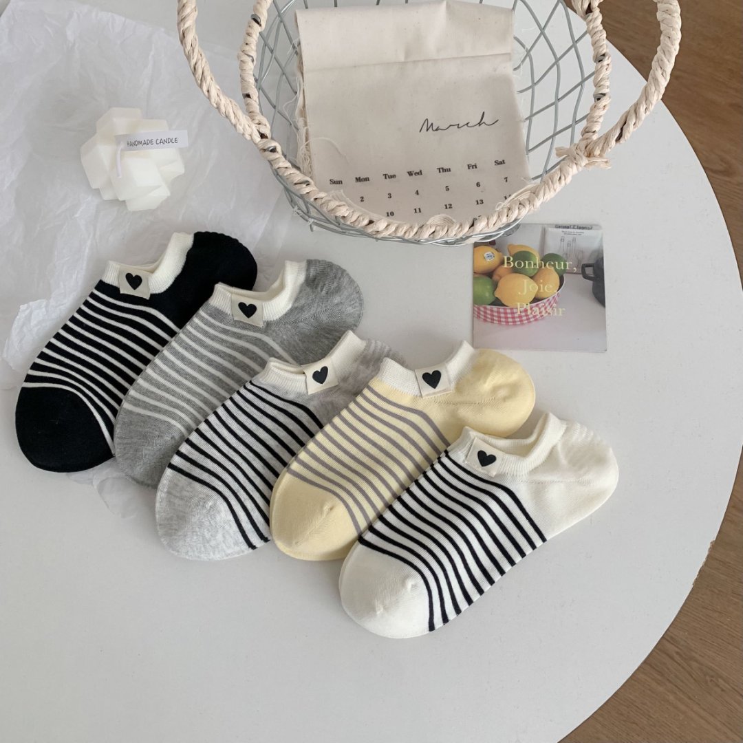 Mekki25 봄과 여름 새로운 보트 양말 핀스트라이프 양말 여자 올 매치 대형 힐 여자 쇼트 양말 로우 탑 얕은 입