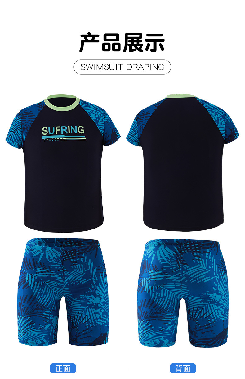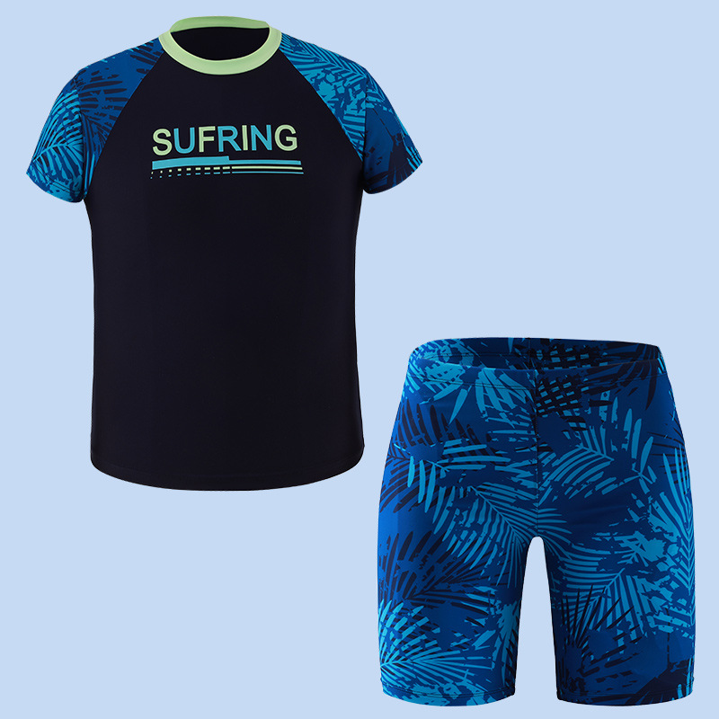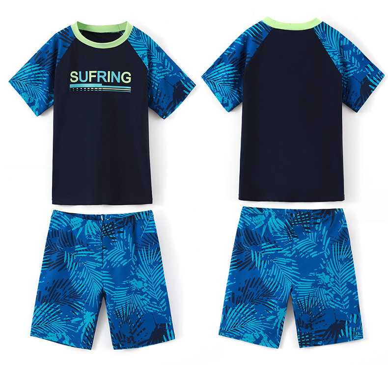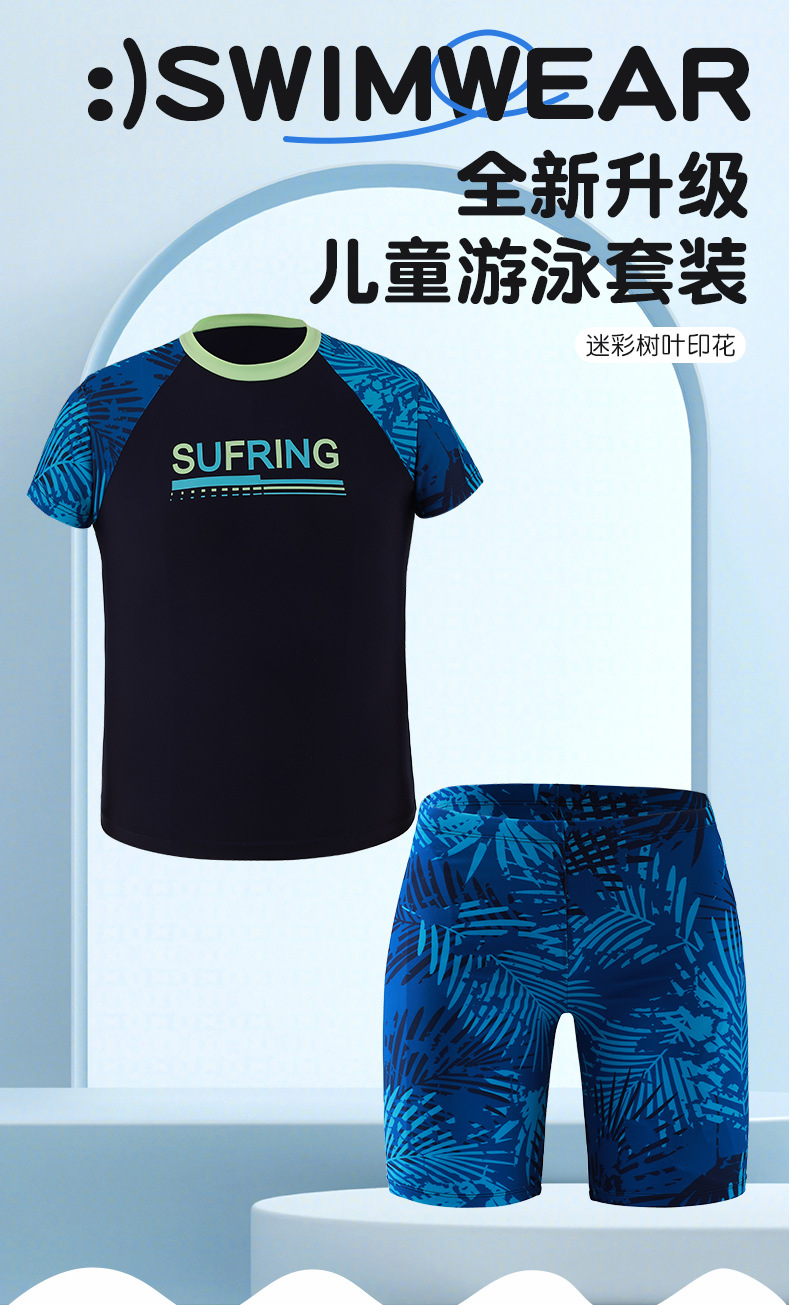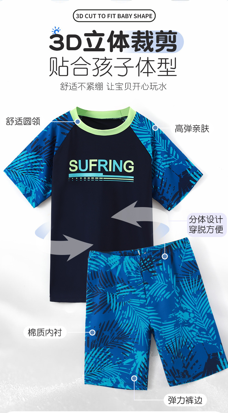 약 2025 대형 아동 수영복 크로스보더 뚱뚱한 소년 스플릿 반팔 반바지 수영복 수영복스토어 가기