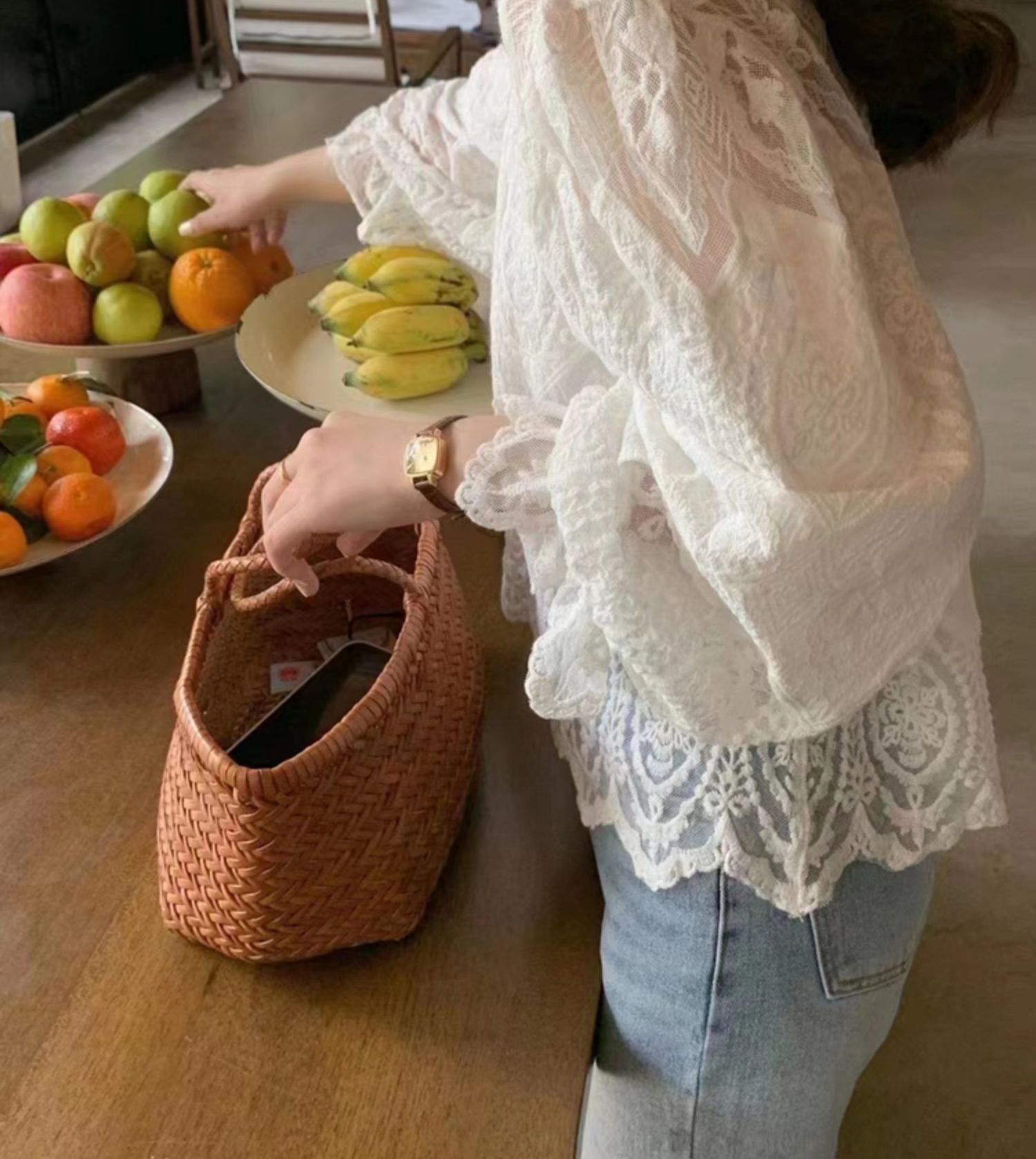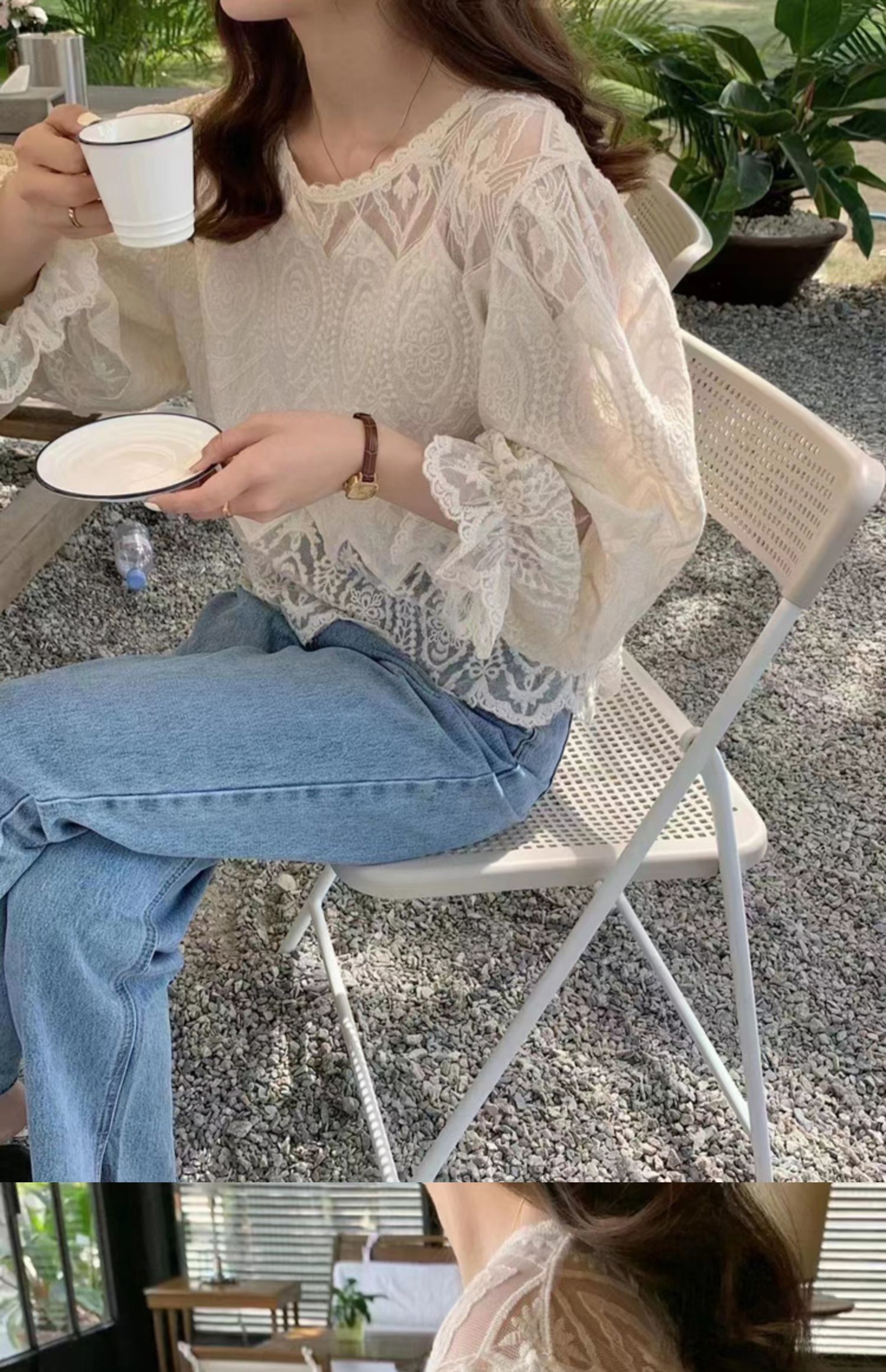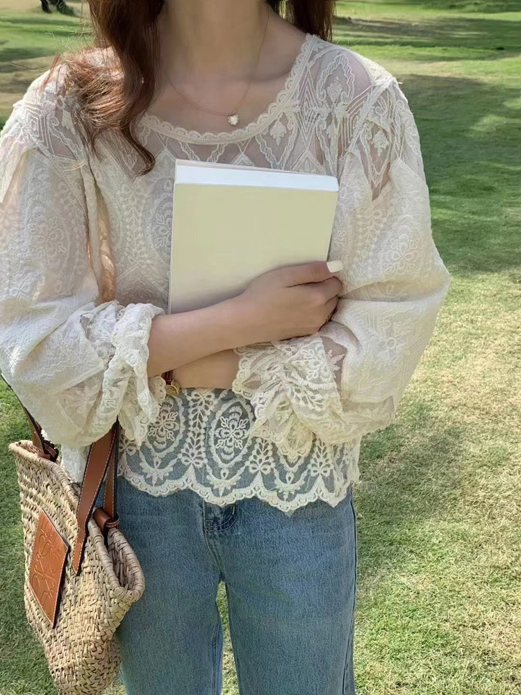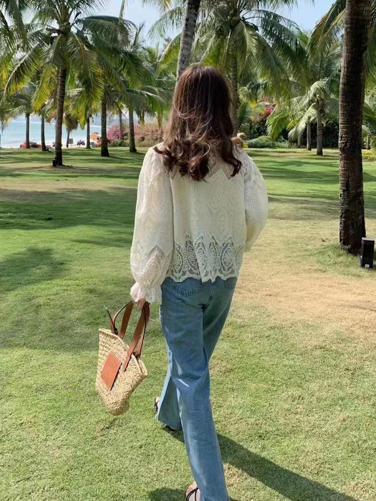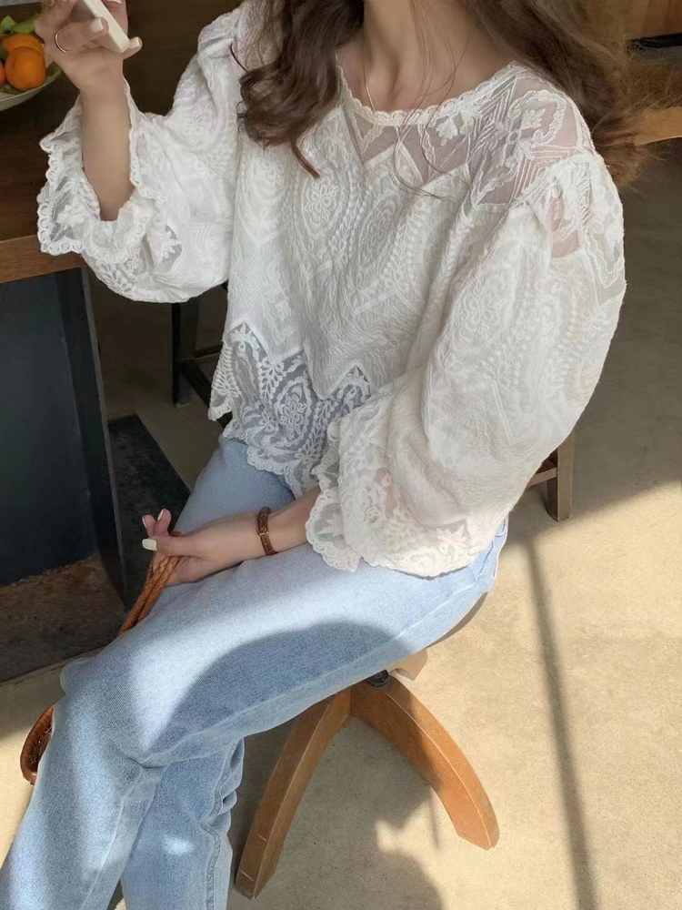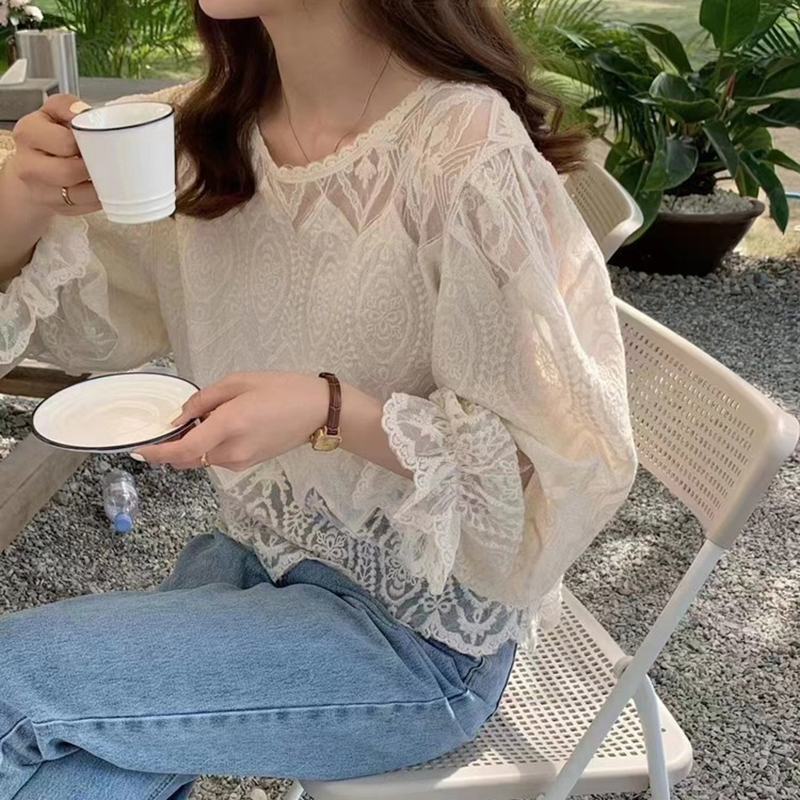 레이스 셔츠 여자의 이른 봄과 가을 2024 새로운 쉬폰 느슨한 유행 작은 셔츠 긴 소매 탑스토어 가기