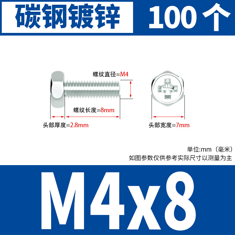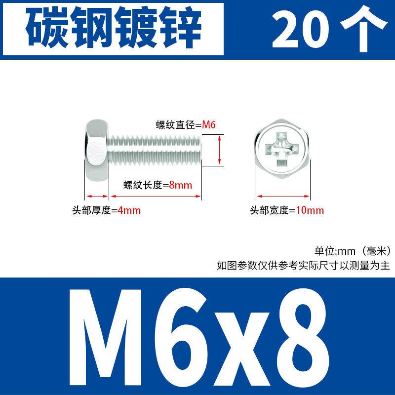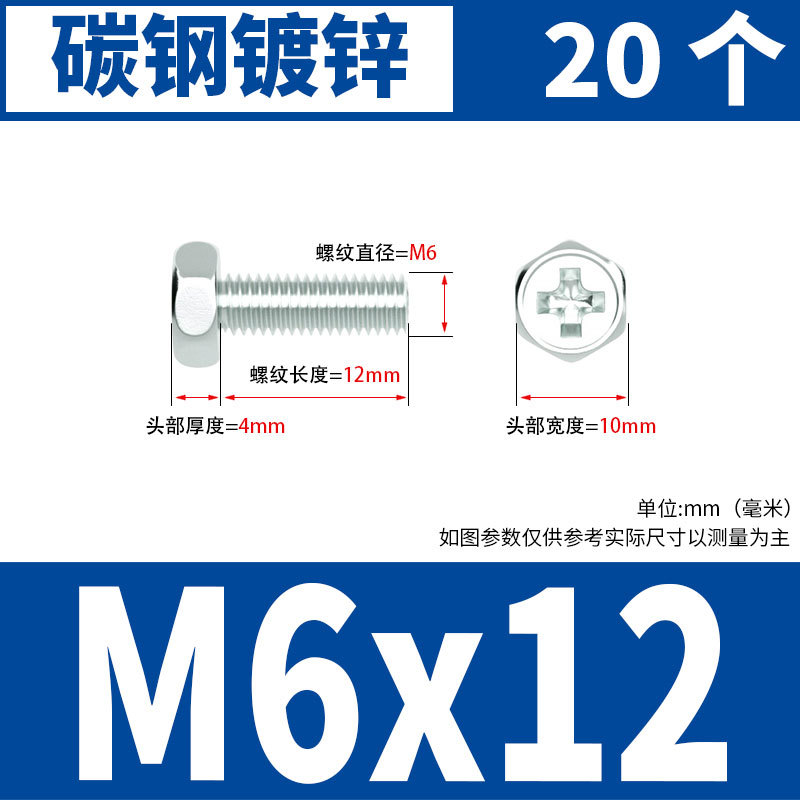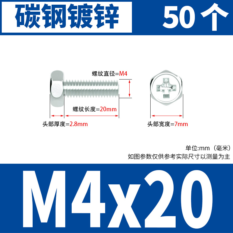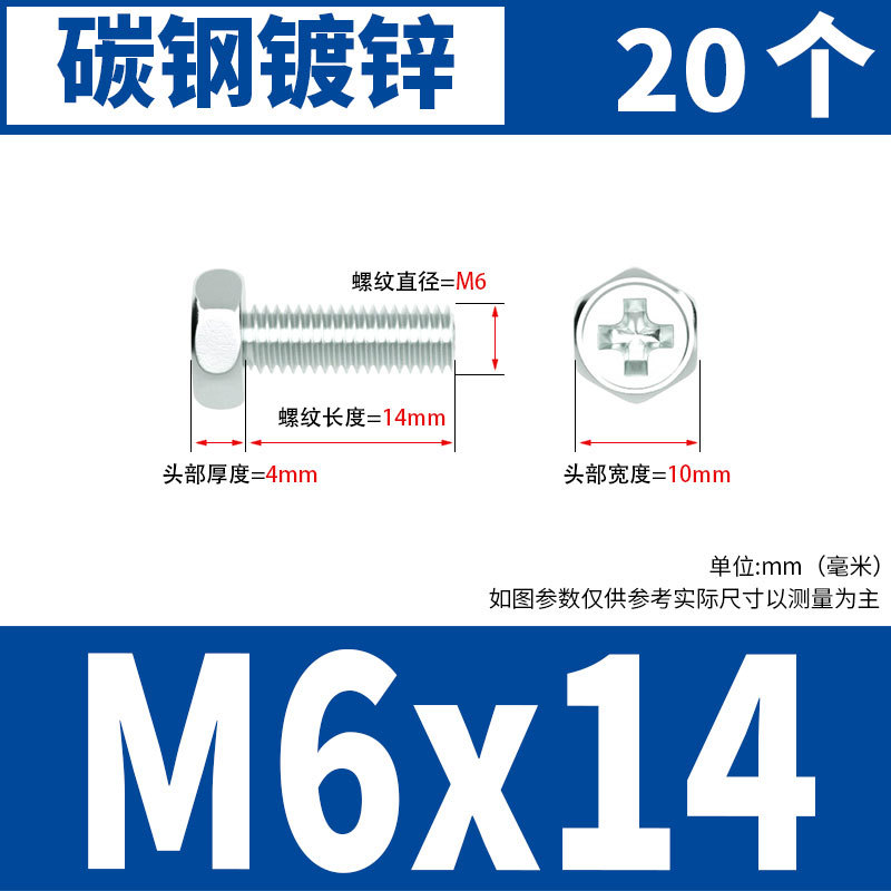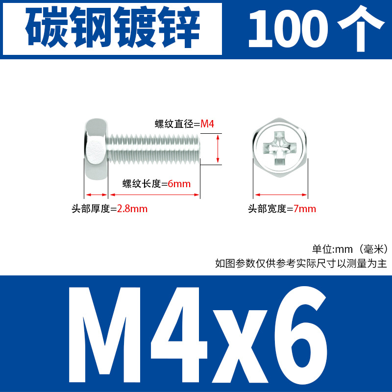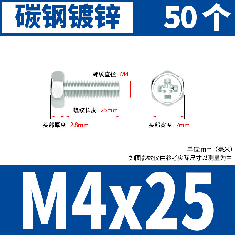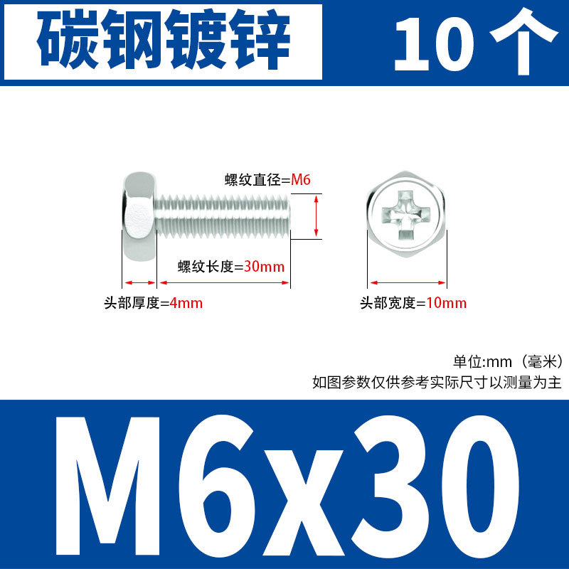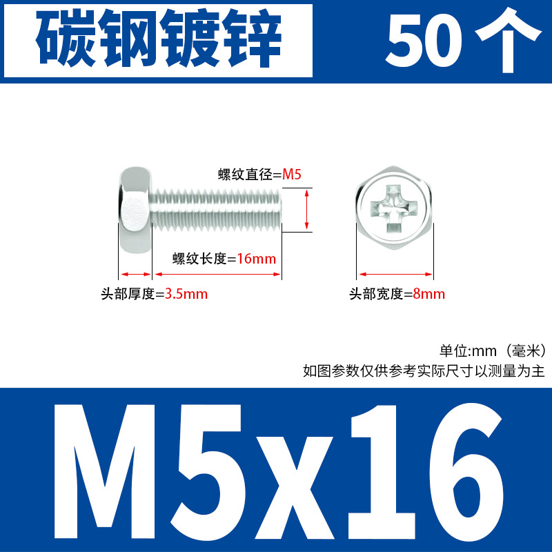 아연 도금 된 크로스 외부 육각 나사 작은 머리 외부 육각 볼트 기계 와이어 기계 치아 크로스 홈 스크류 M4M5M6