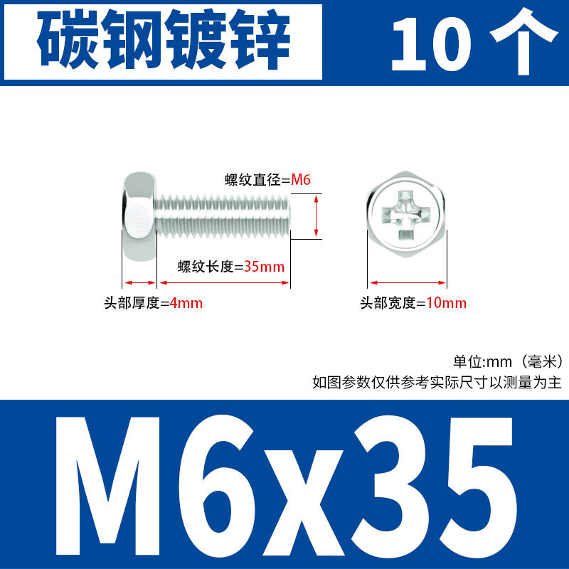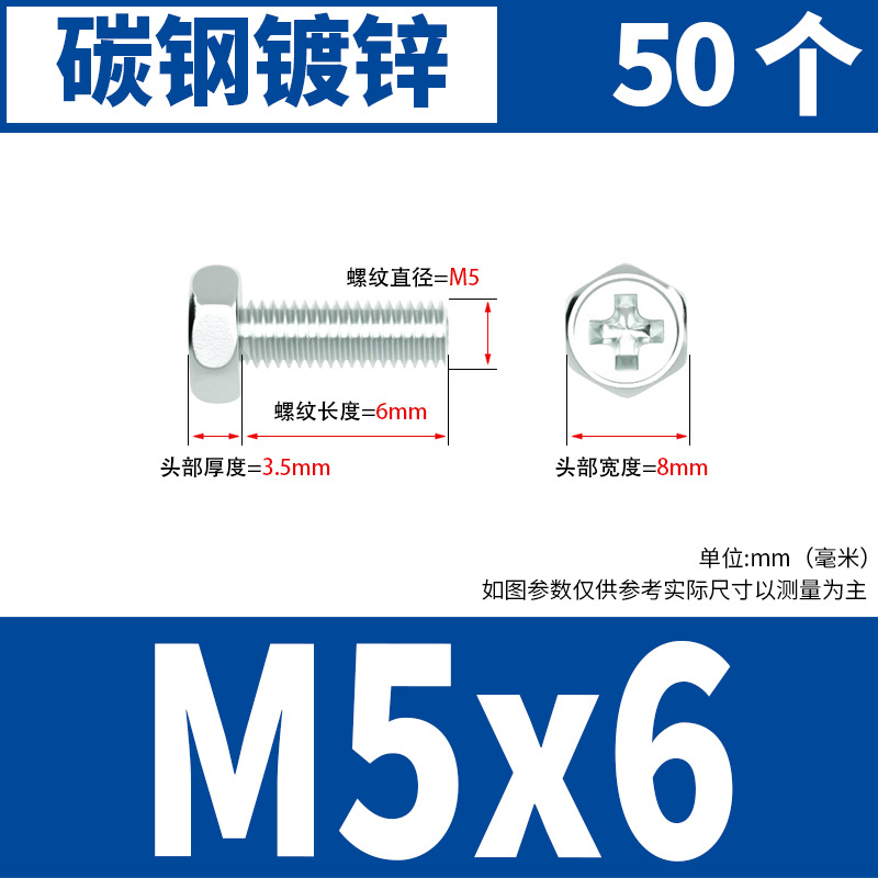 아연 도금 된 크로스 외부 육각 나사 작은 머리 외부 육각 볼트 기계 와이어 기계 치아 크로스 홈 스크류 M4M5M6스토어 가기