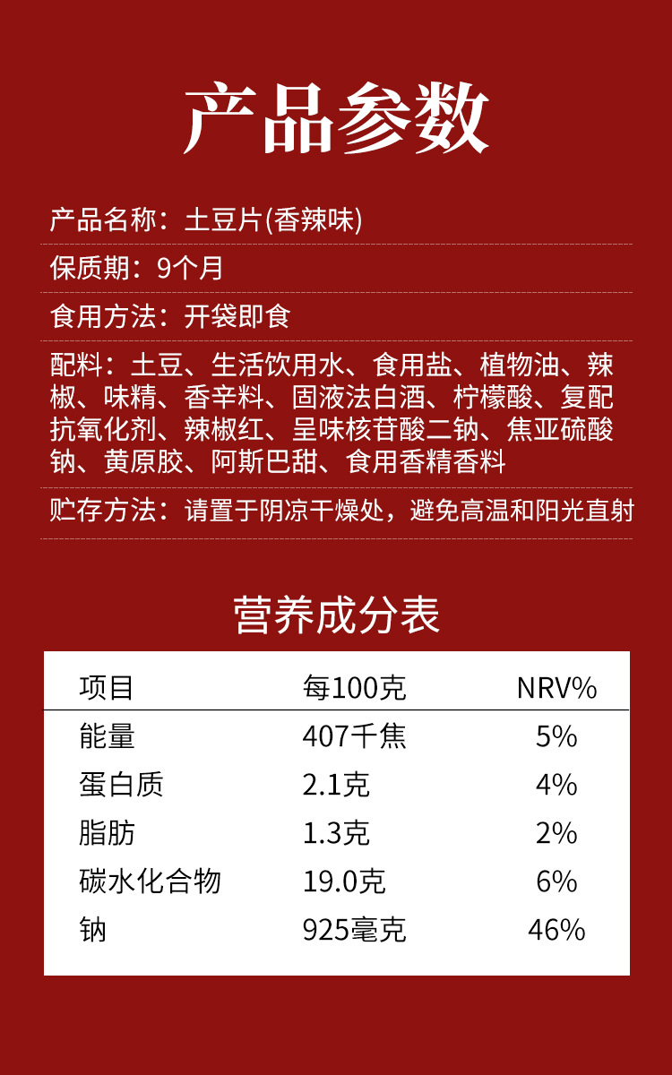 타액 베이비 감자 칩 2 봉지 * 100g 포장 매운 바삭하고 시원한 오리지널 컷 인 맛 드라마 아래에서 바로 먹을 수있는 간식