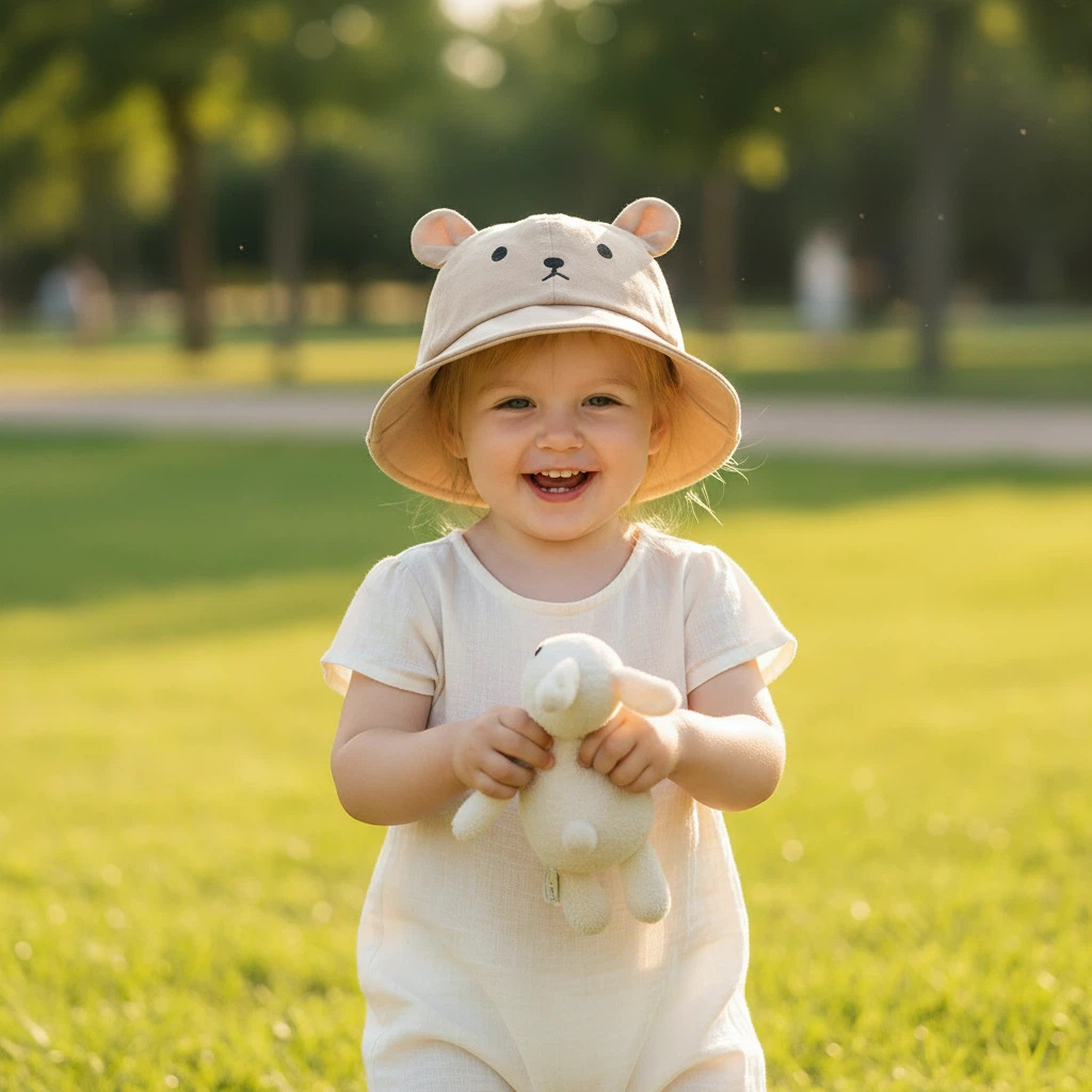 봄과 여름 ins2024 한국 스타일 아기 슈퍼 귀여운 곰 어부 모자 양돈 선 스크린 얇은 분지 모자스토어 가기