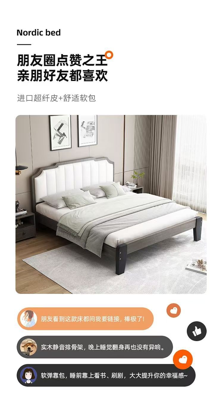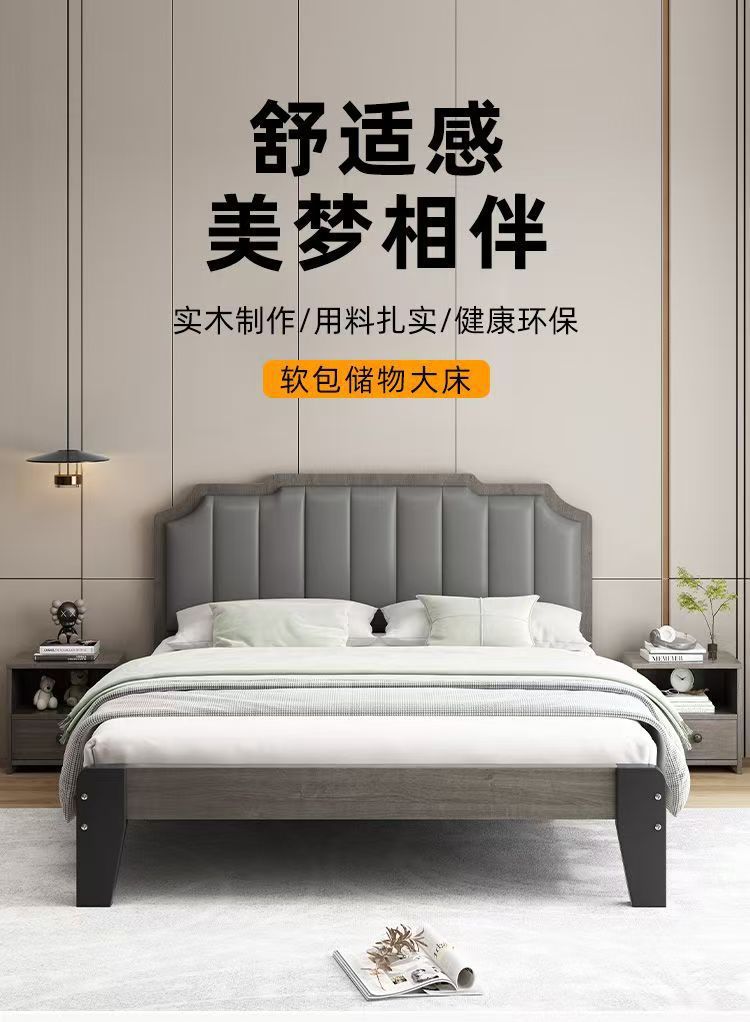 침대 옆 소프트 백 침실 1.8 m 더블 침대 1.5 북유럽 임대 주택 경제적인 1.2m 싱글 침대 프레임 홈스테이 침대스토어 가기