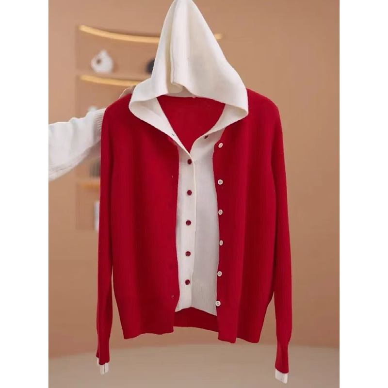 새로운 폭발 후드 가짜 투피스 니트웨어 여성의 가을과 겨울 새 플러스 사이즈 통통녀 스웨터 카디건 디자인 센스스토어 가기