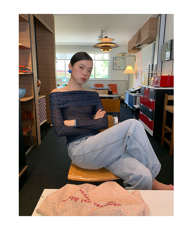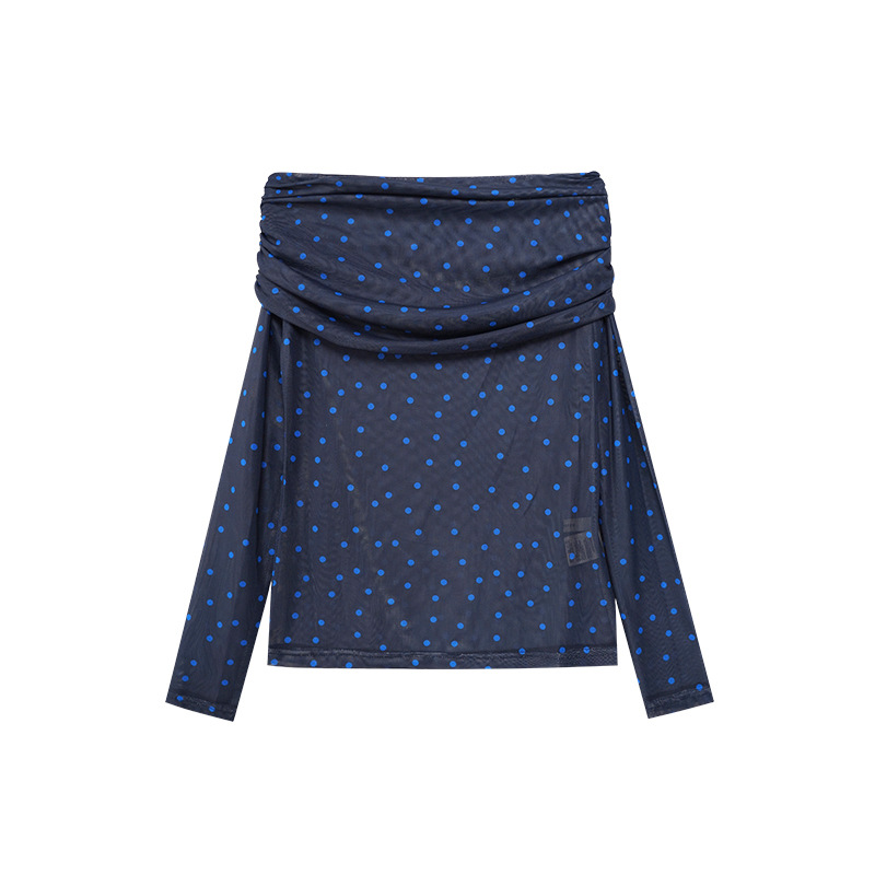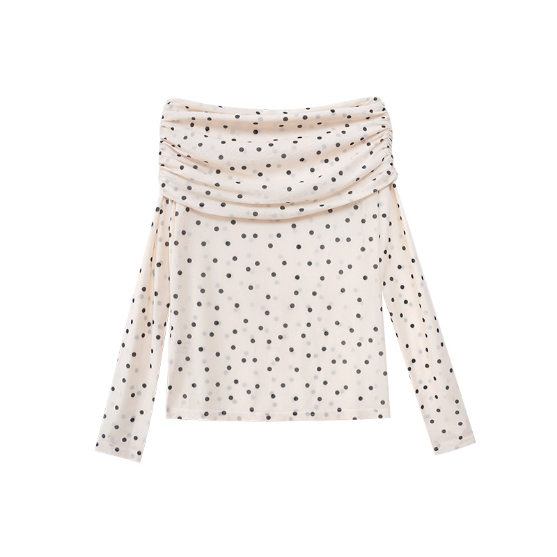 Quanlimei NEWOPEN 2025 이른 봄 프랑스 매력 스타일 원 숄더 폴카 도트 쉬폰 셔츠 탑 여성 C3095