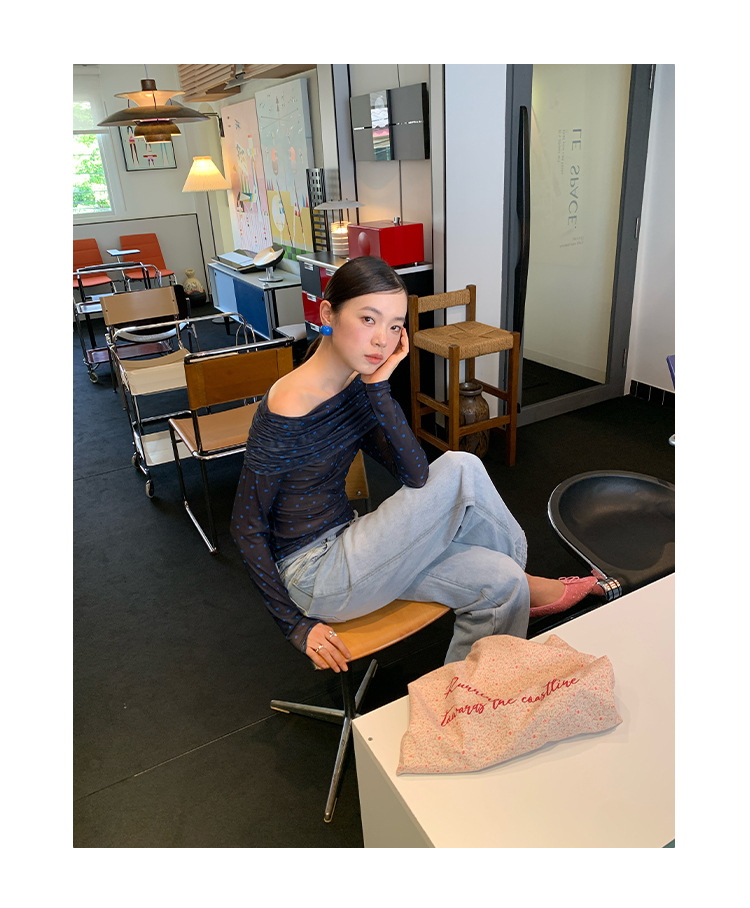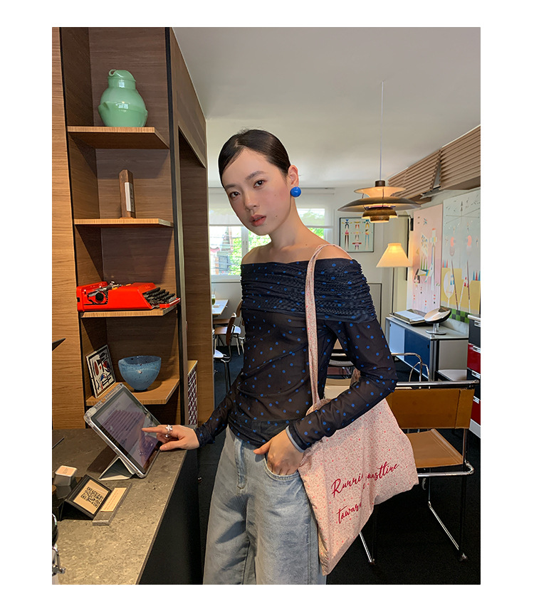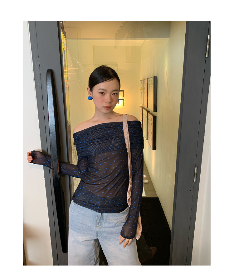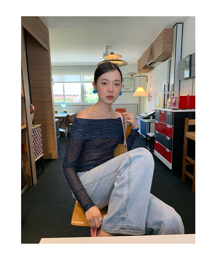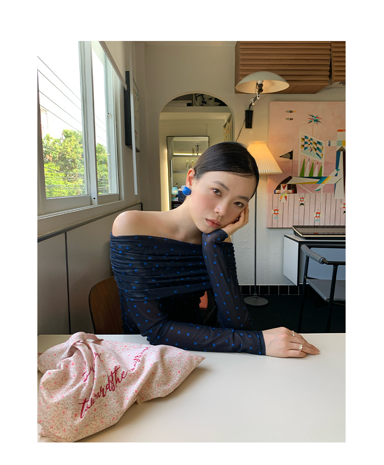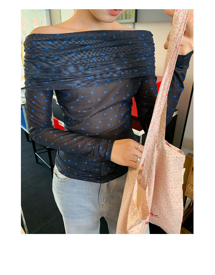 Quanlimei NEWOPEN 2025 이른 봄 프랑스 매력 스타일 원 숄더 폴카 도트 쉬폰 셔츠 탑 여성 C3095스토어 가기
