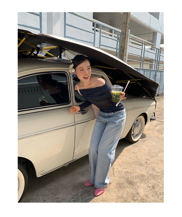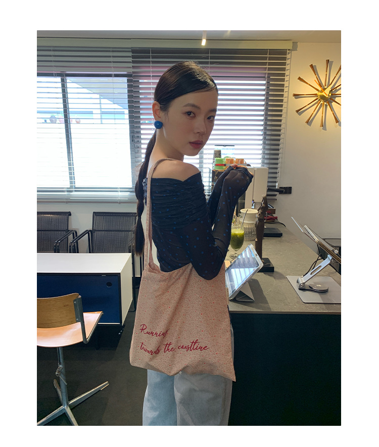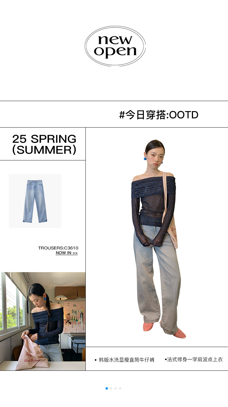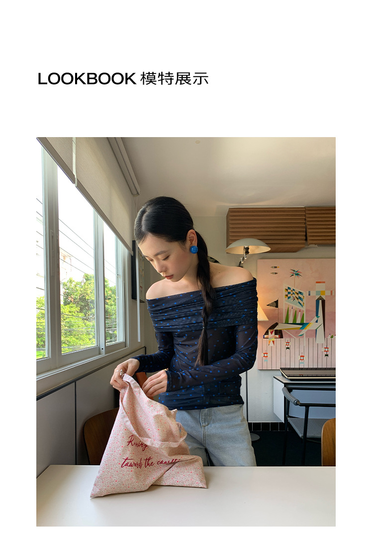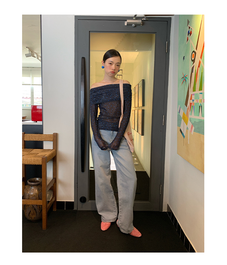 Quanlimei NEWOPEN 2025 이른 봄 프랑스 매력 스타일 원 숄더 폴카 도트 쉬폰 셔츠 탑 여성 C3095스토어 가기