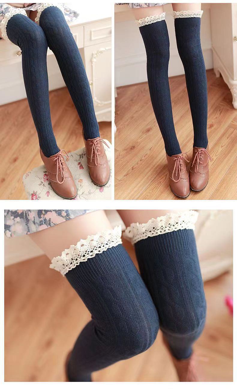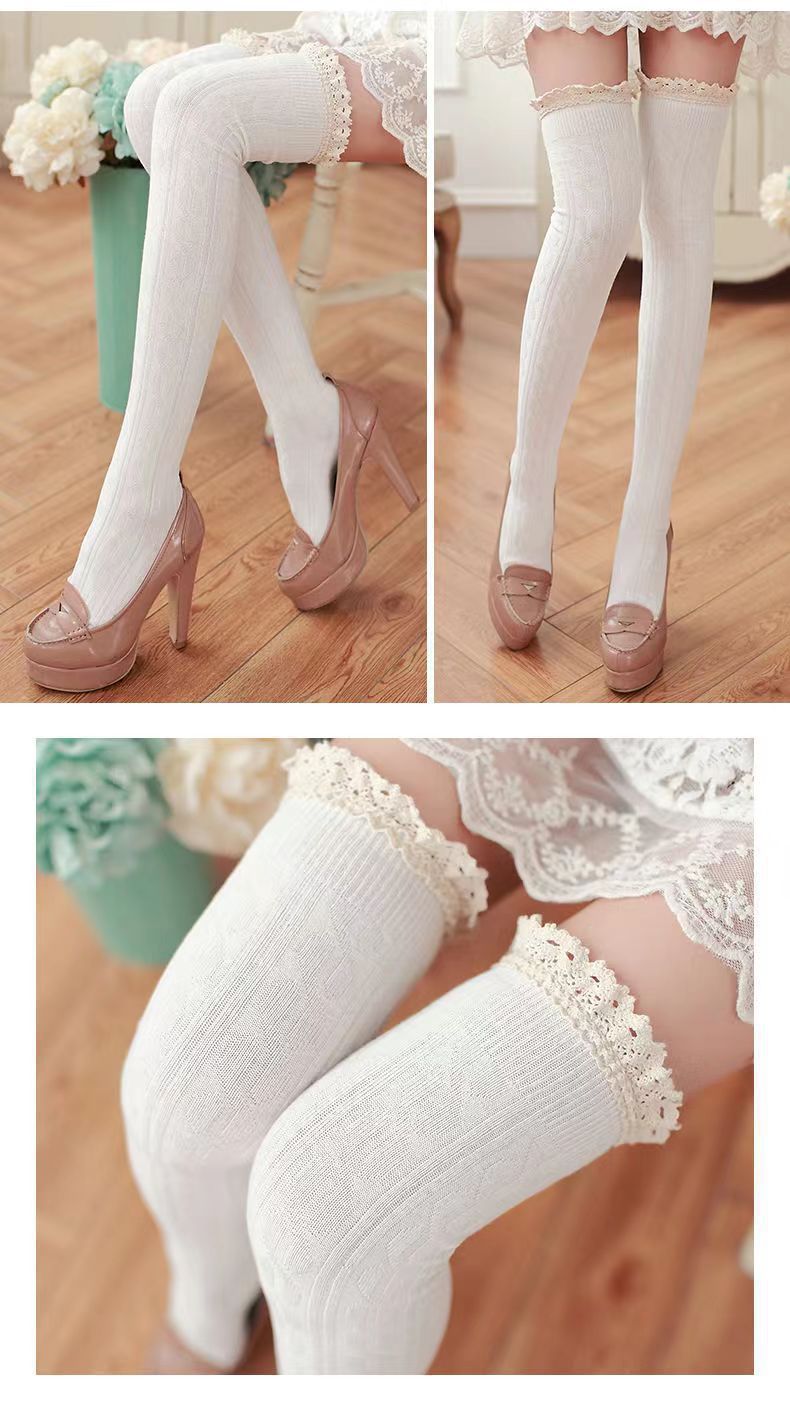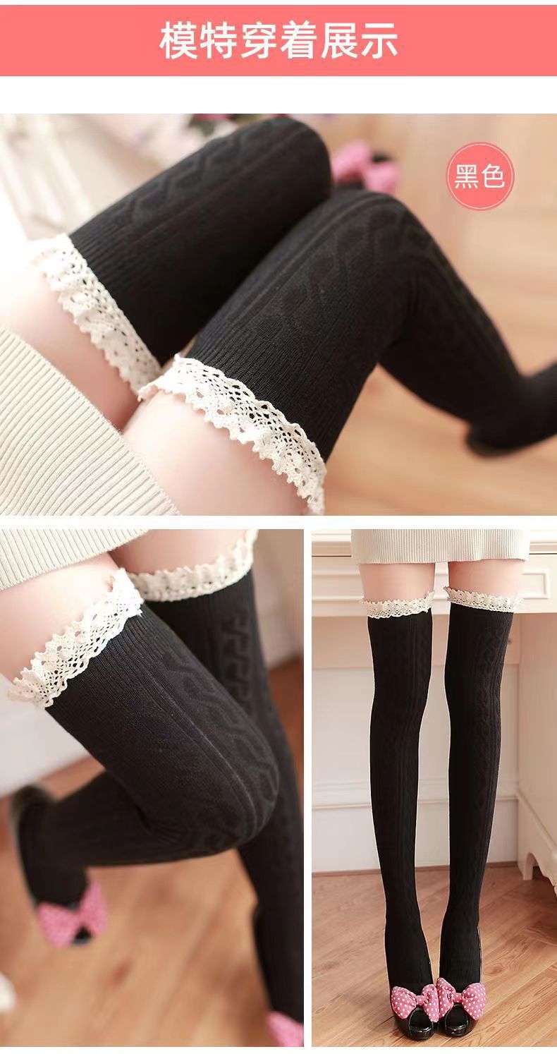 봄과 가을 일본 트위스트 로리타 무릎 양말 소녀 화이트 블랙 레이스 귀여운 긴 무릎 양말스토어 가기