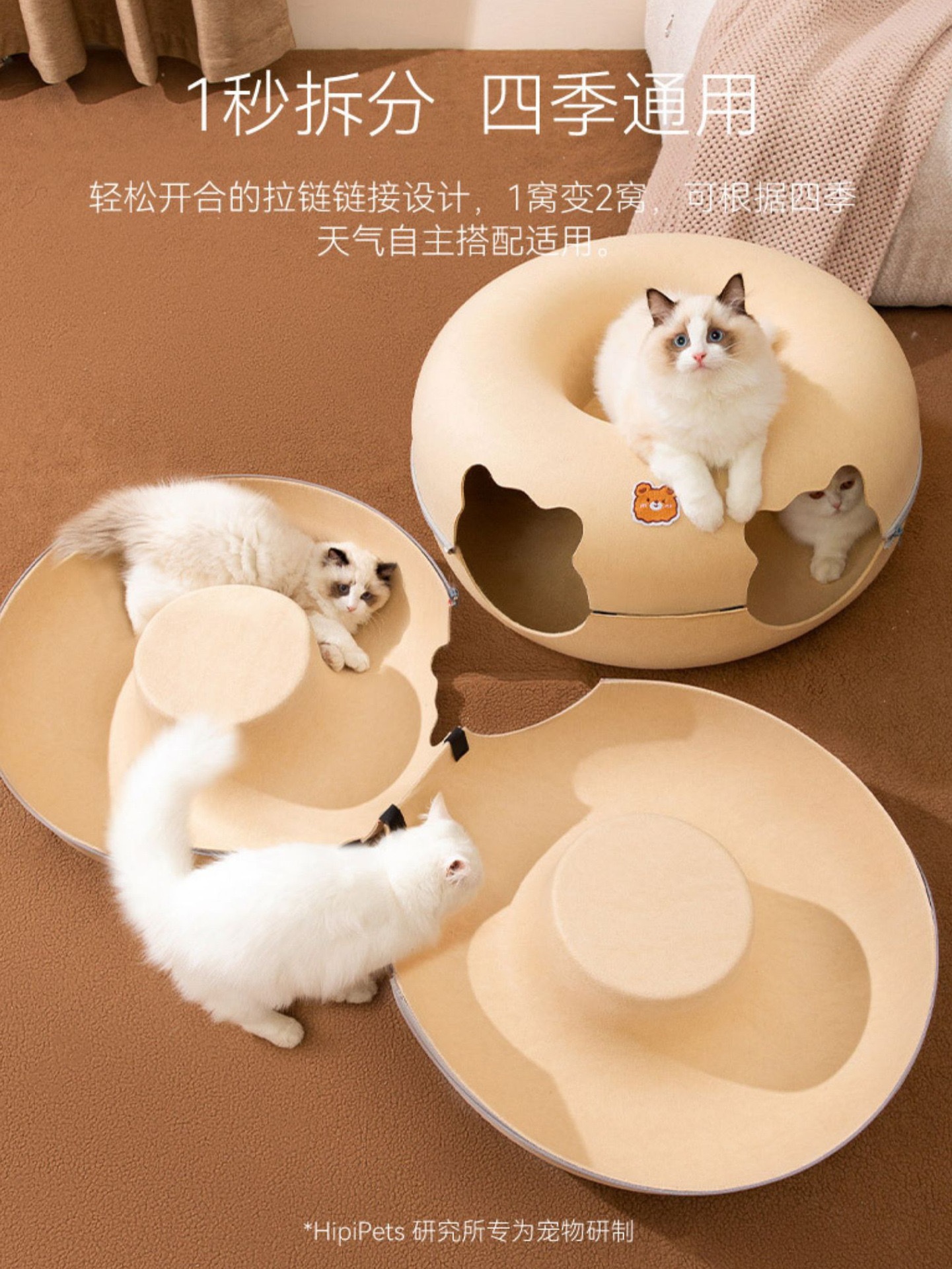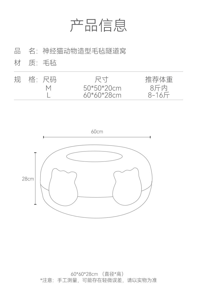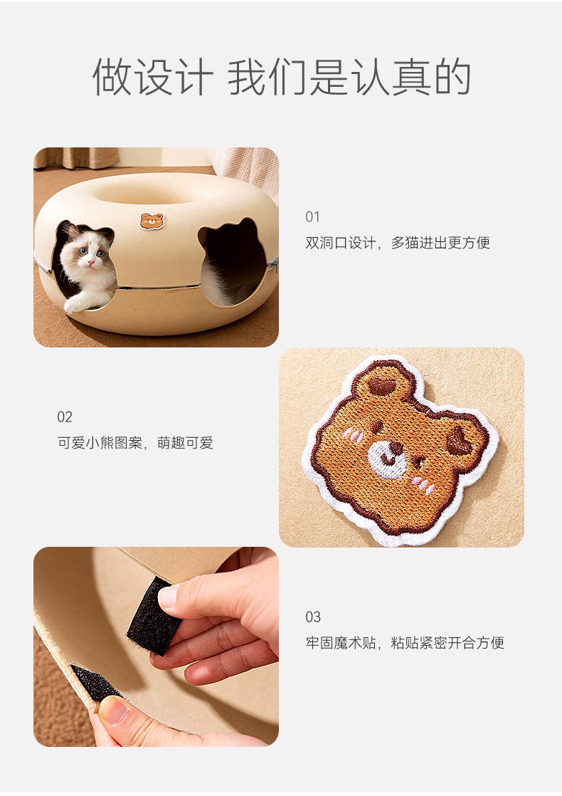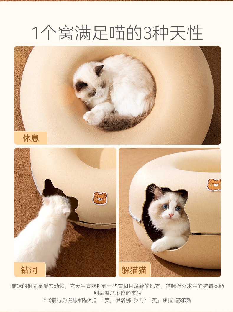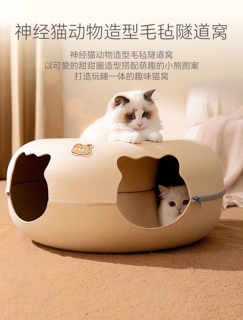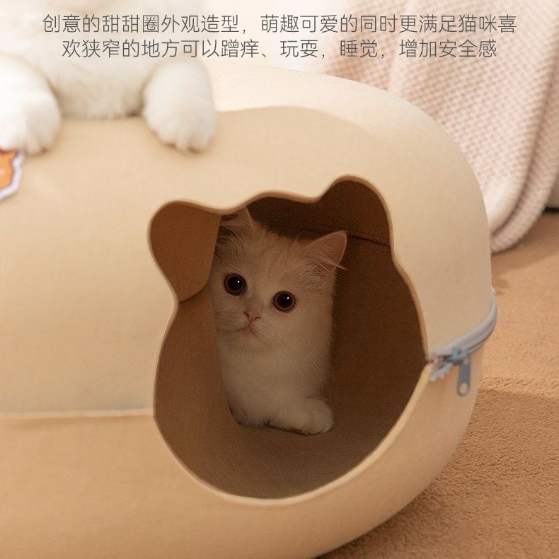사이버 레드 도넛 애완 동물 둥지 사계절 유니버설 이동식 및 세척 가능한 고양이 둥지 슬리핑 터널 반 밀폐형 고양이 둥지 장난감스토어 가기