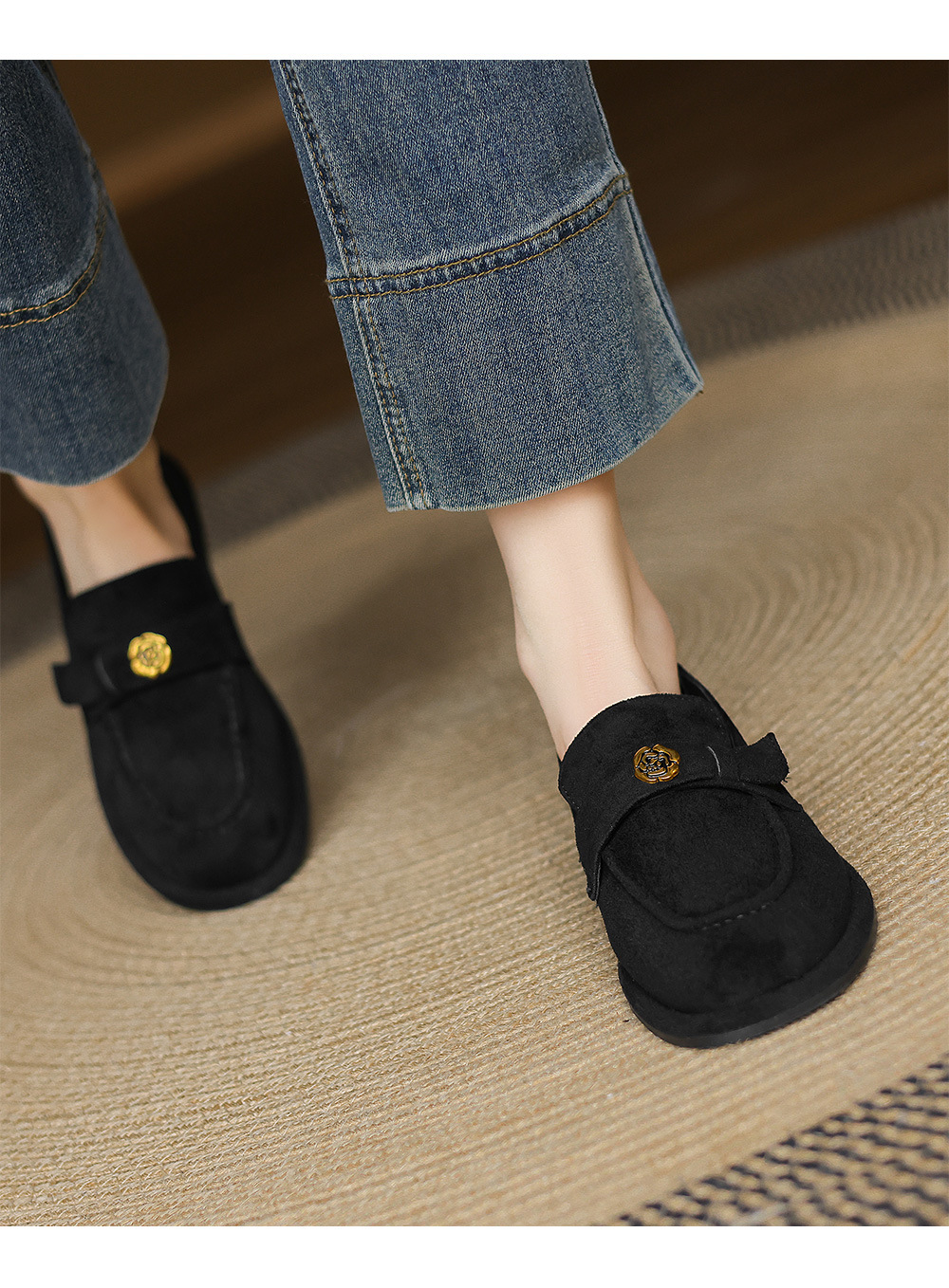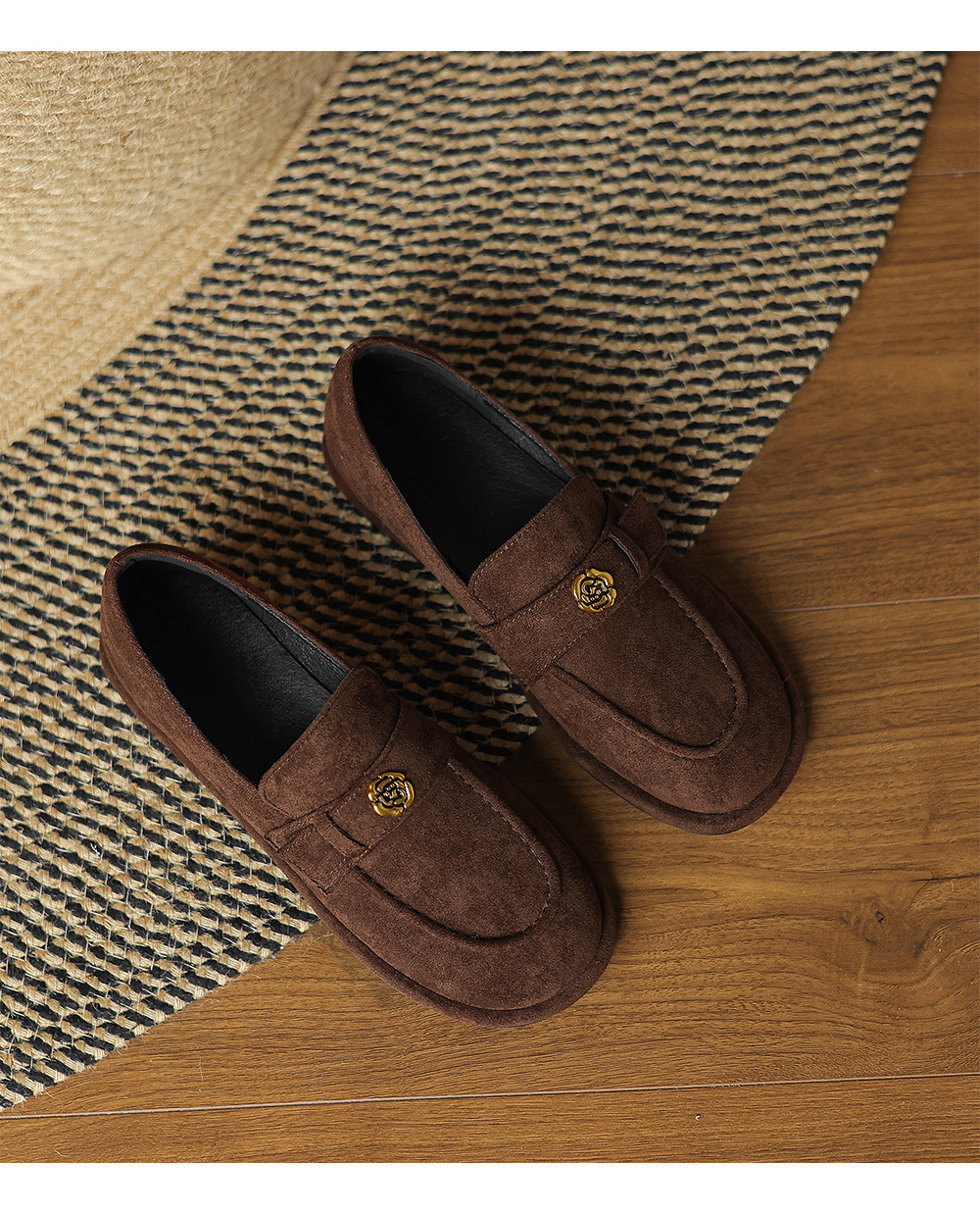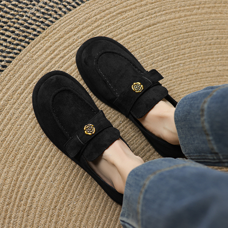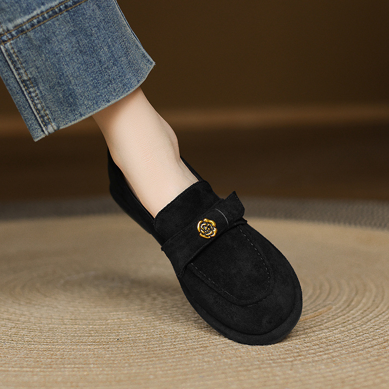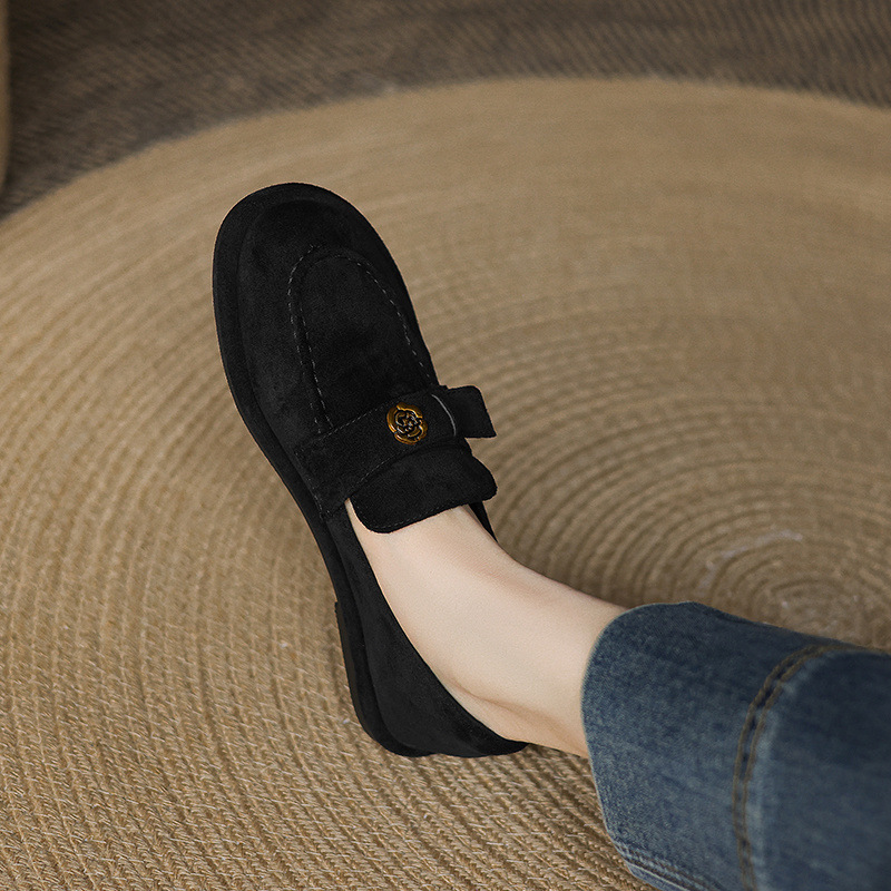 33 --- 43 대형 신발 동백 로우 힐 로퍼 2025 새로운 여성 신발 영국 복고풍 플랫 슈즈 여성